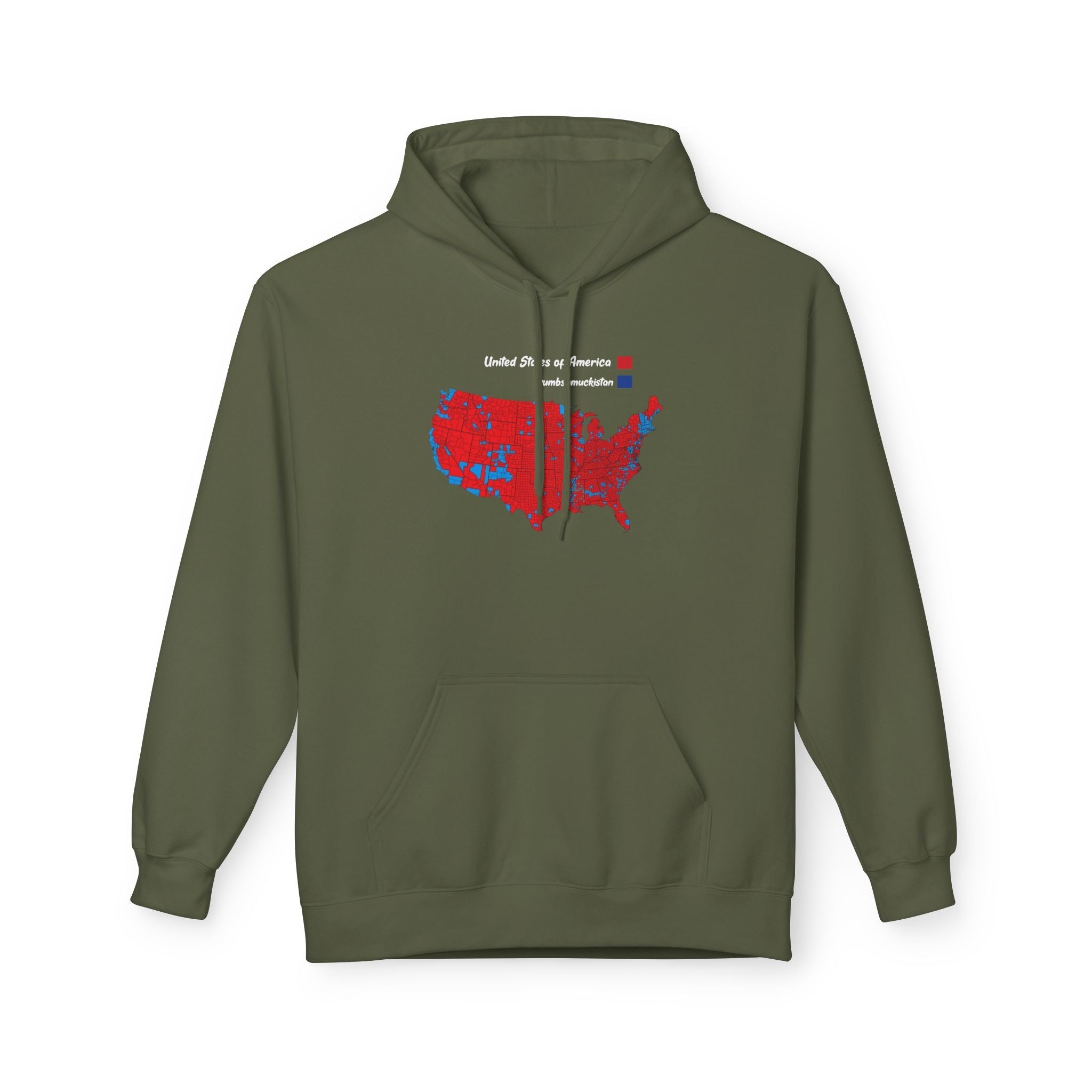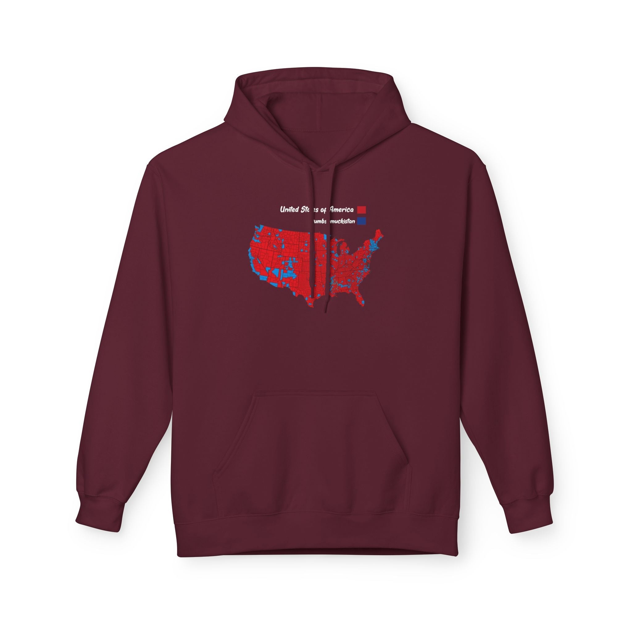 Stay warm and get the last laugh with the Divided States Hoodie! This cozy, high-quality hoodie features a satirical U.S. map design that splits the nation into red for the "United States of America" and blue for "Dumbschmuckistan." Perfect for those who love mixing humor with a bit of commentary, this hoodie combines comfort and personality in one standout piece. Made from soft, durable fabric with a roomy front pocket and drawstring hood, it’s the ultimate way to stay warm and spark a conversation. Wear it loud, wear it proud, and let everyone know what side you're on!