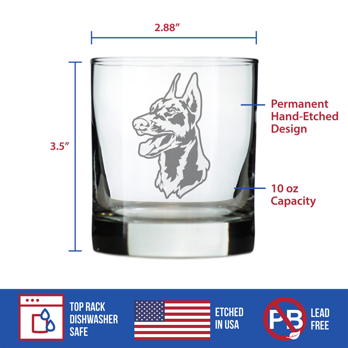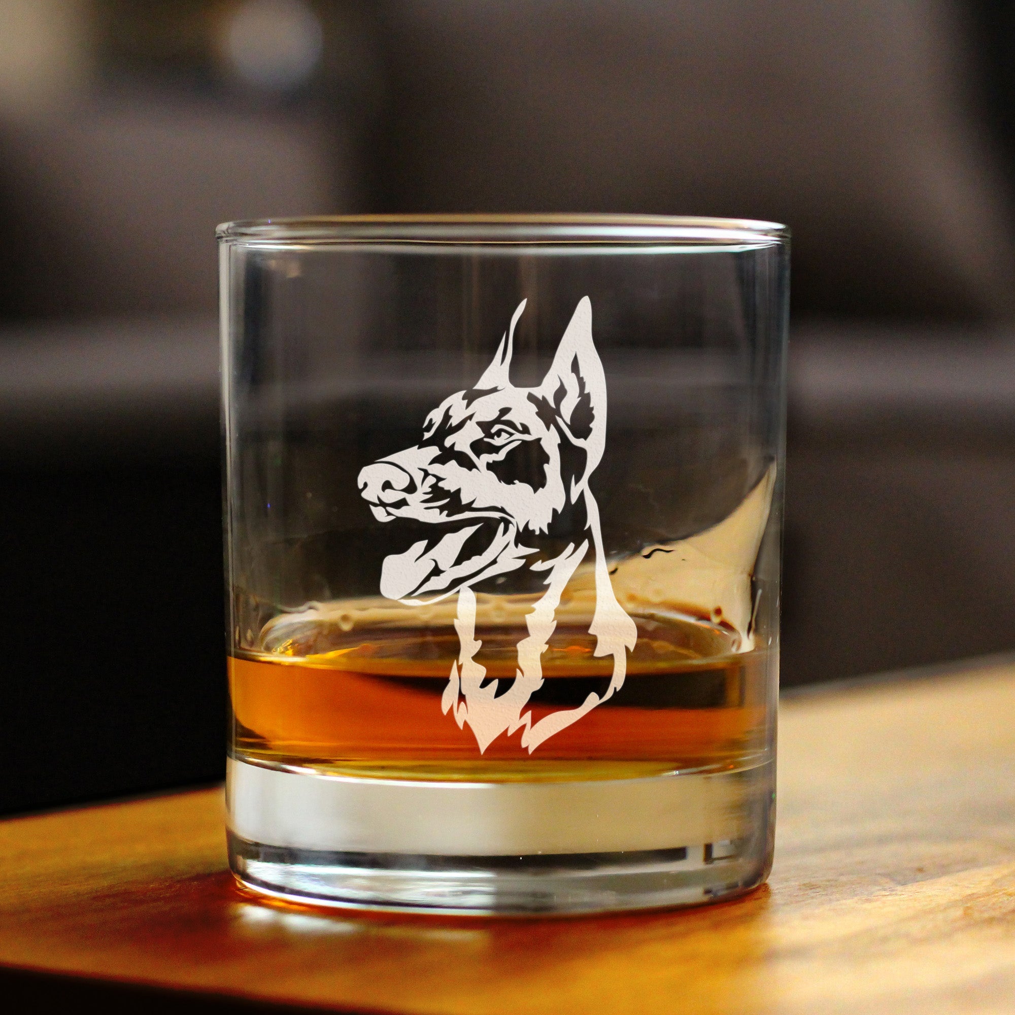 Doberman Face Whiskey Rocks Glass - Unique Dog Themed Decor and Gifts for Moms & Dads of Pinscher Dobermans - 10.25 Oz