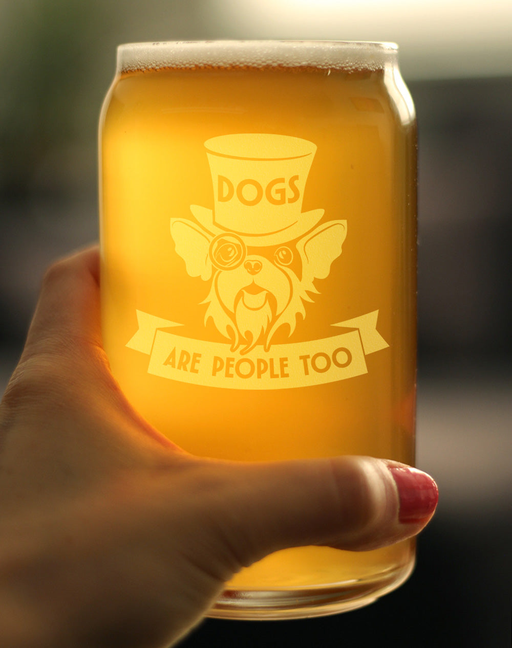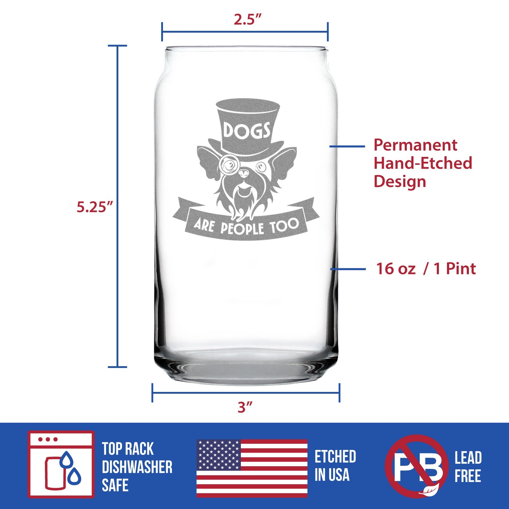 Dogs Are People Too Engraved Beer Can Glass Gifts for Dog People Beer Can Shaped Pint Glass - 16oz