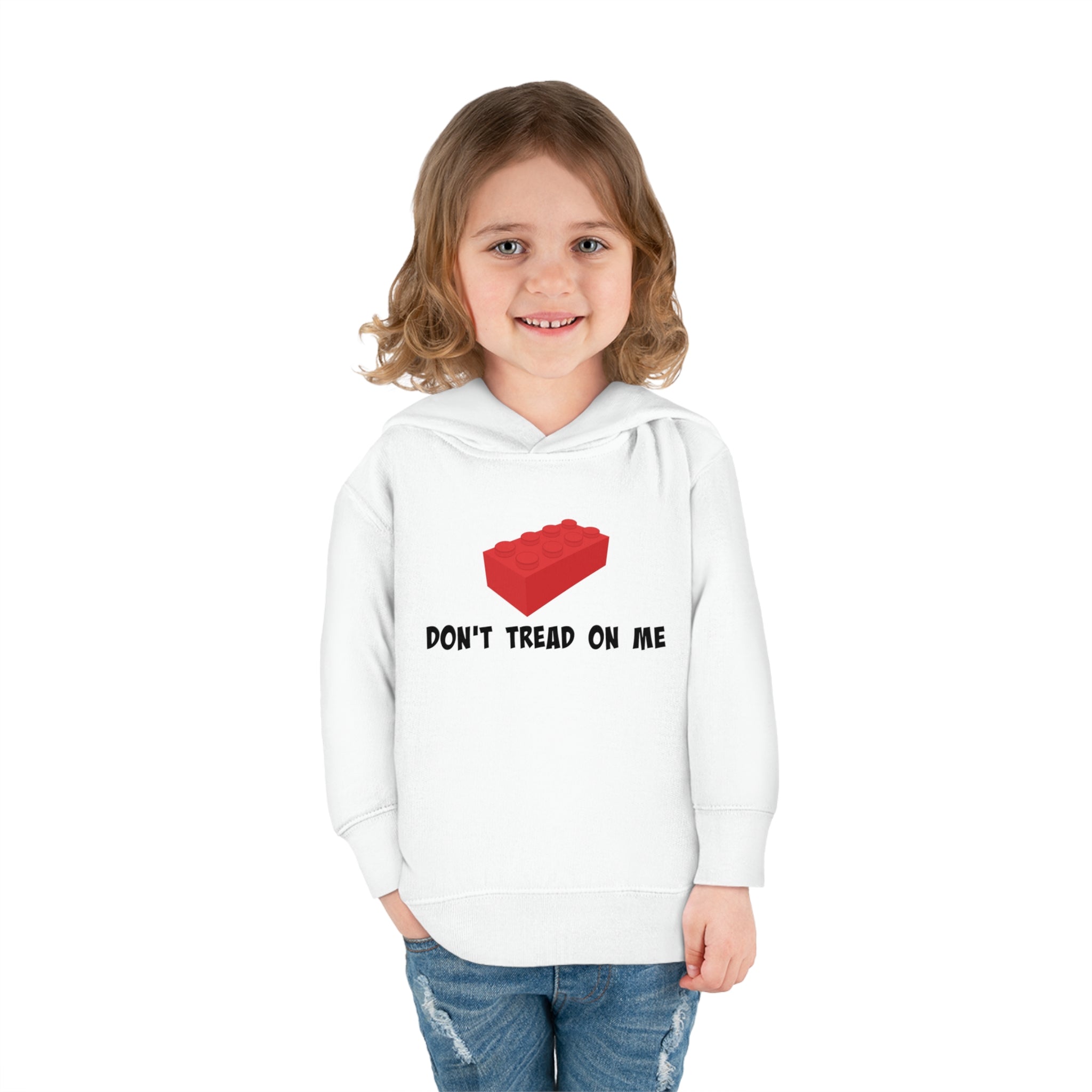 Introducing the "Don't Tread On Me" Lego Toddler Pullover Fleece Hoodie – a cozy and stylish way for your little one to show their American spirit. With a playful Lego-inspired design and warm fleece, this hoodie keeps them snug and fashionable all year round. Get one now and let your toddler proudly display their independence!