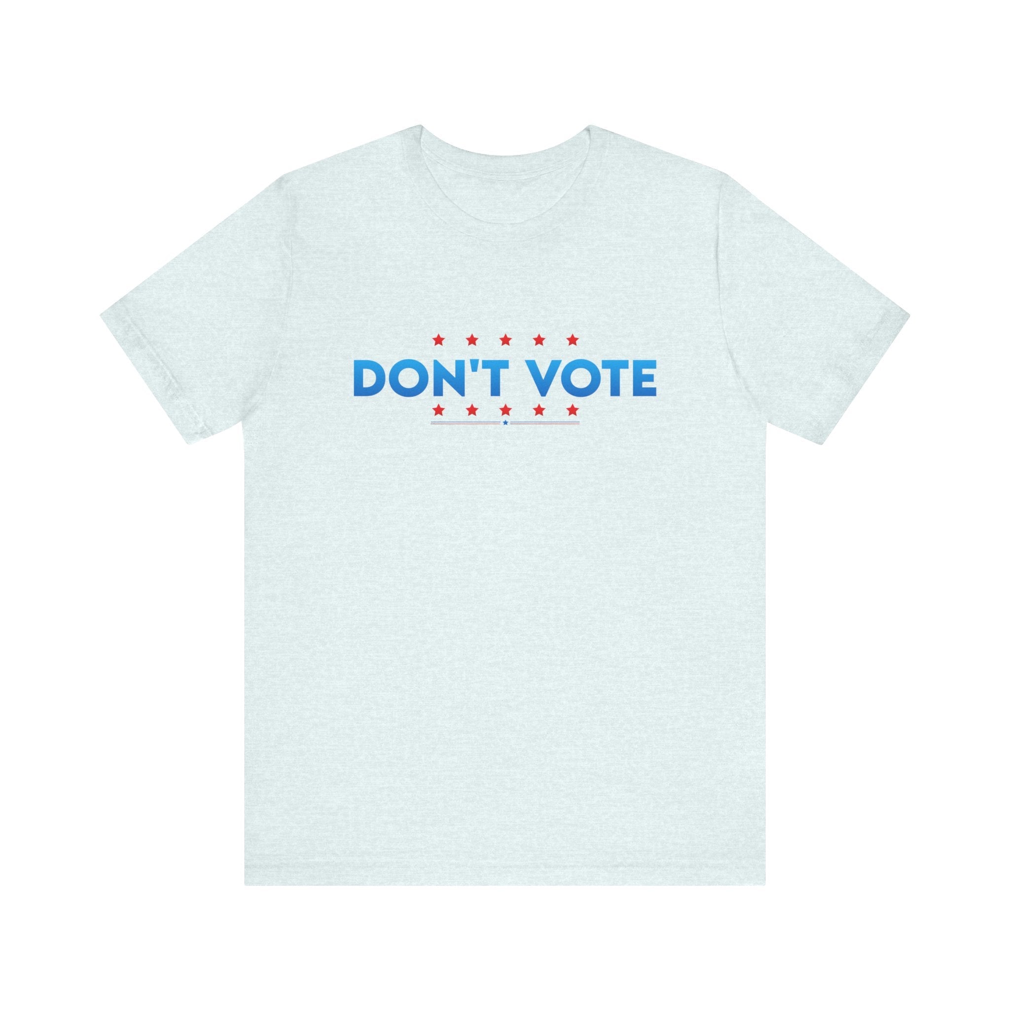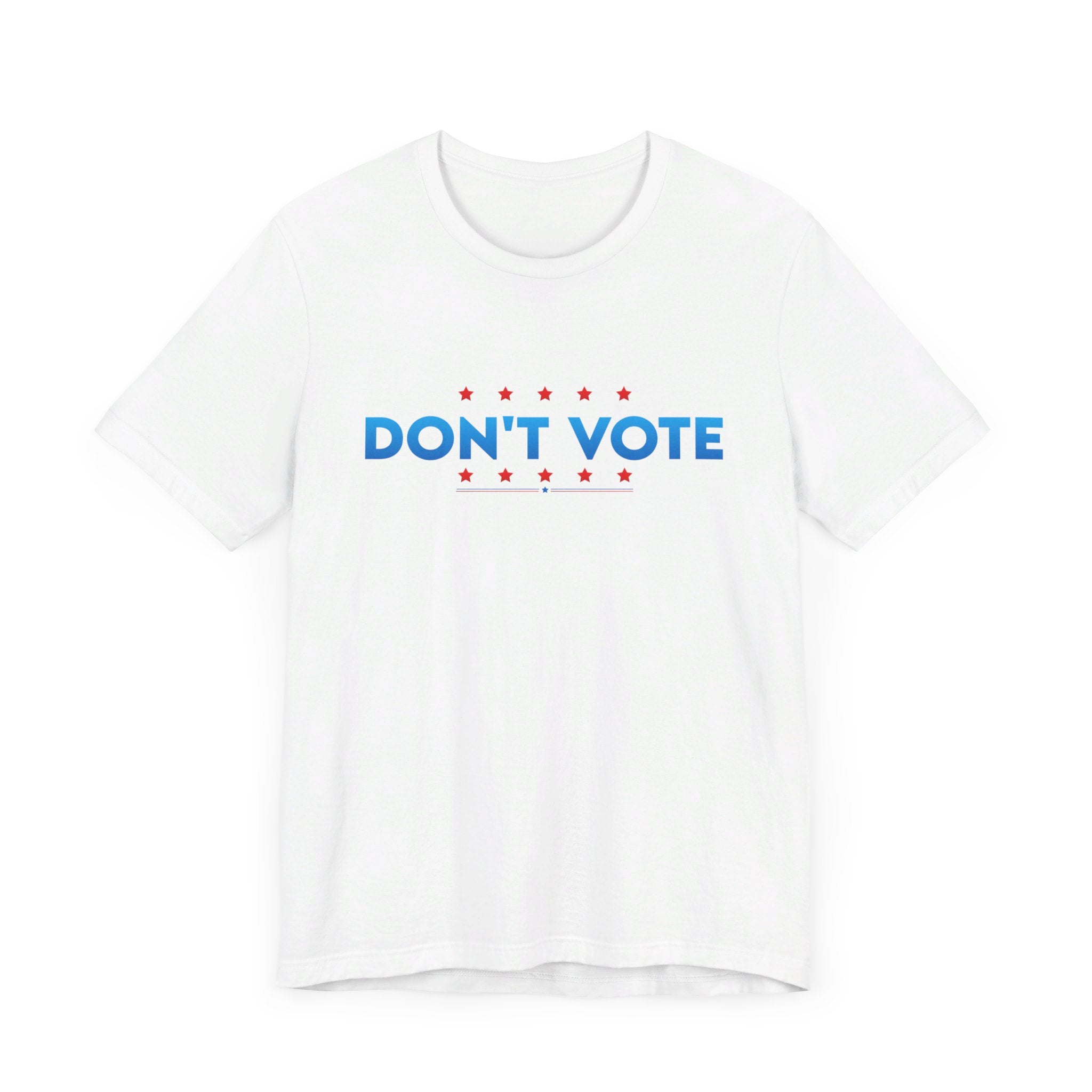 Rebel with a Cause: This shirt sports the classic red, white, and blue but flips the script with a bold "Don't Vote" message. Perfect for sparking conversations and challenging the status quo.