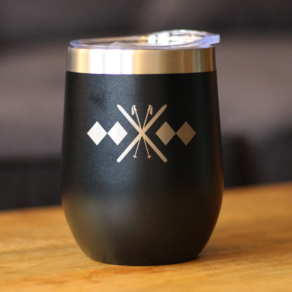 Double Black Diamond - Wine Tumbler Glass with Sliding Lid - Stainless Steel Travel Mug - Fun Skiing Gifts and Decor for Skiers