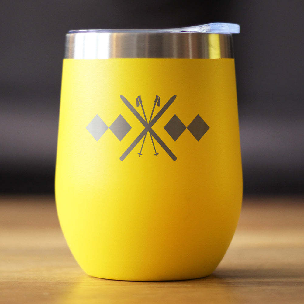 Double Black Diamond - Wine Tumbler Glass with Sliding Lid - Stainless Steel Travel Mug - Fun Skiing Gifts and Decor for Skiers ‐ Yellow