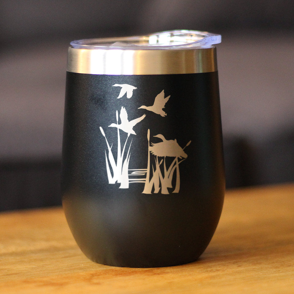 Duck Pond - Wine Tumbler Glass with Sliding Lid - Stainless Steel Insulated Mug - Unique Duck Gifts for Women and Men ‐ Black