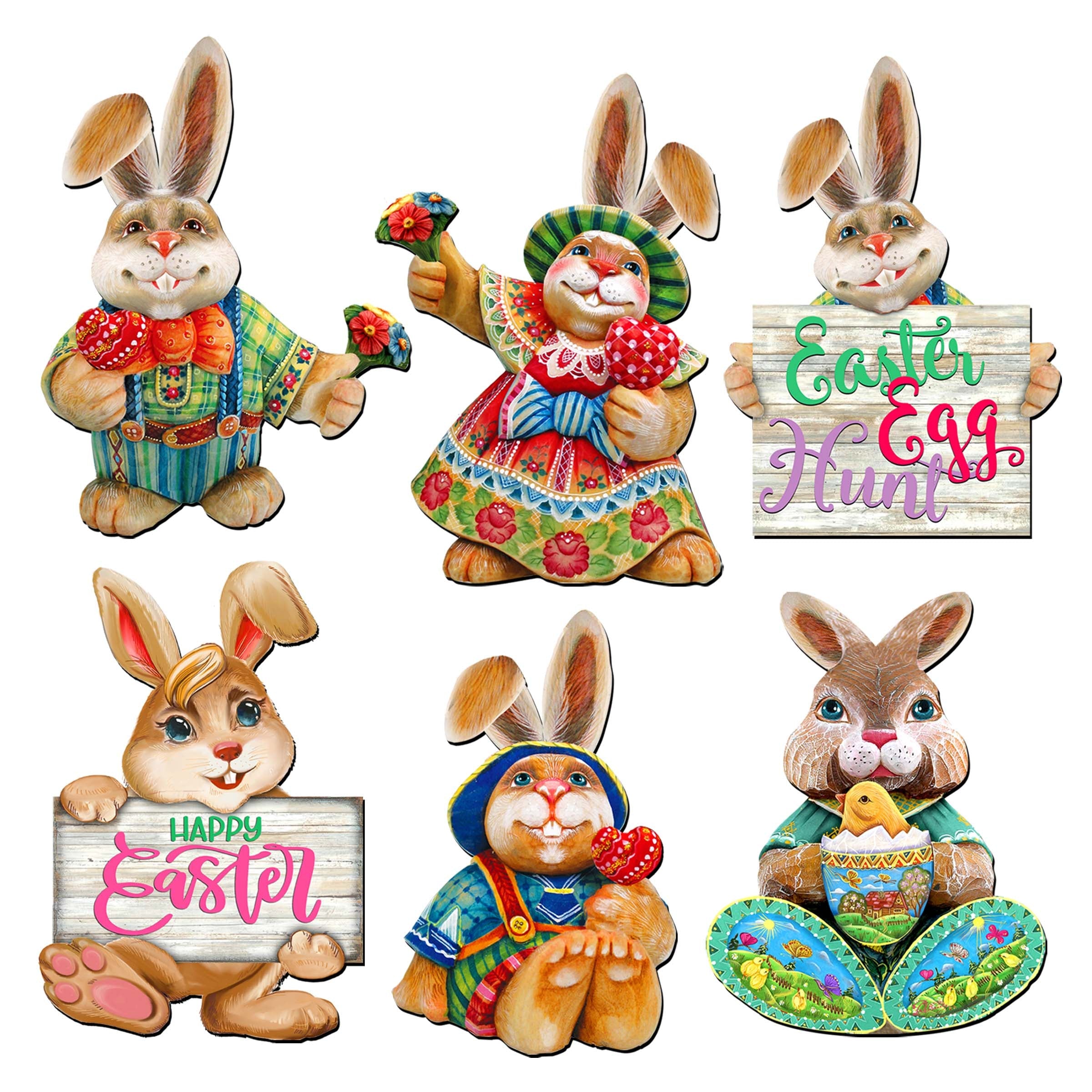 Easter Bunny Family Decorative Eco Wood Magnets Set of 6 by G. Debrekht - Easter Décor - 8090041G-S6