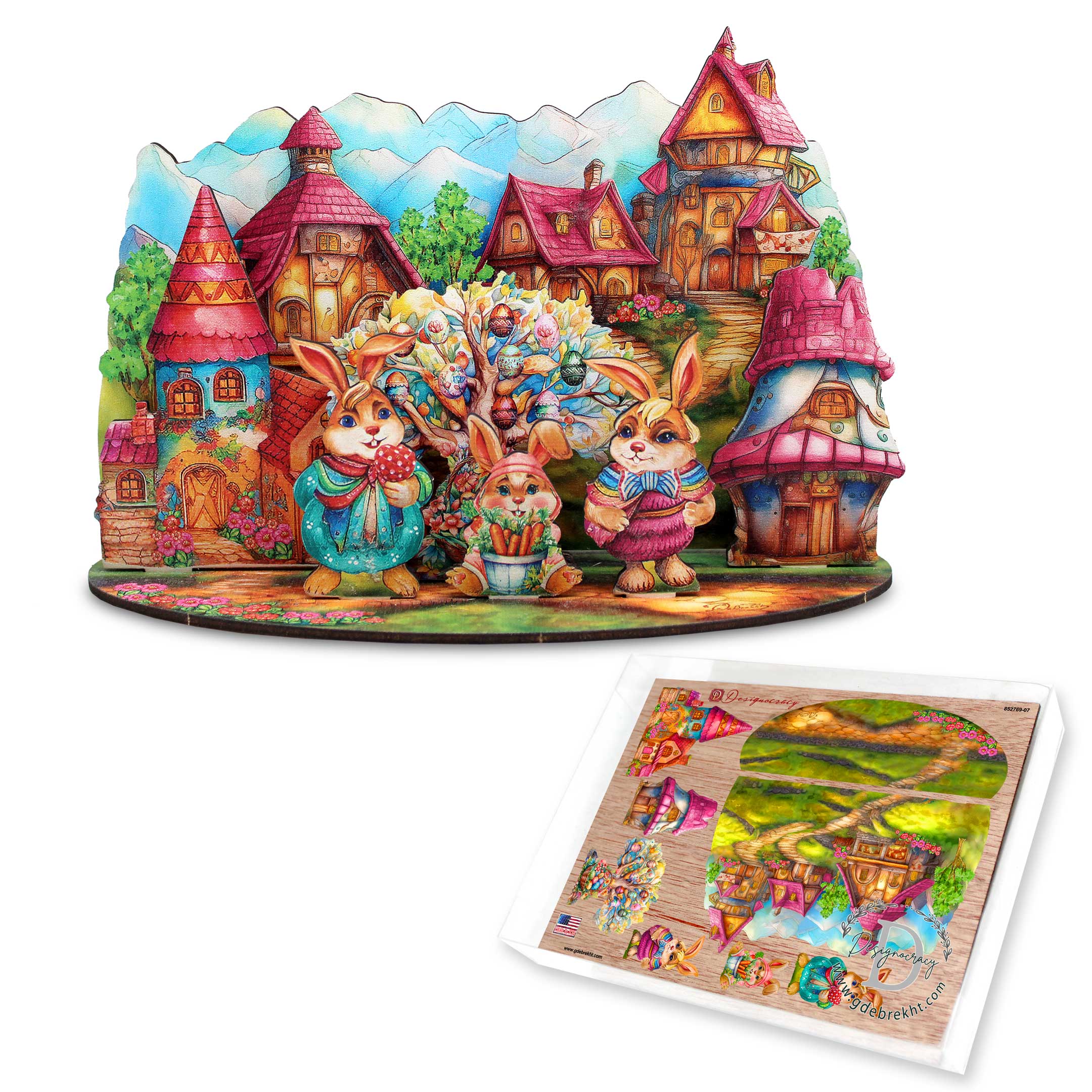 Easter Bunny Village Eco Wood Decorative Village Eco Wood Set by G. Debrekht Easter Spring Decor - 852769 ‐ Small 6.5 x 9 x 3 inches