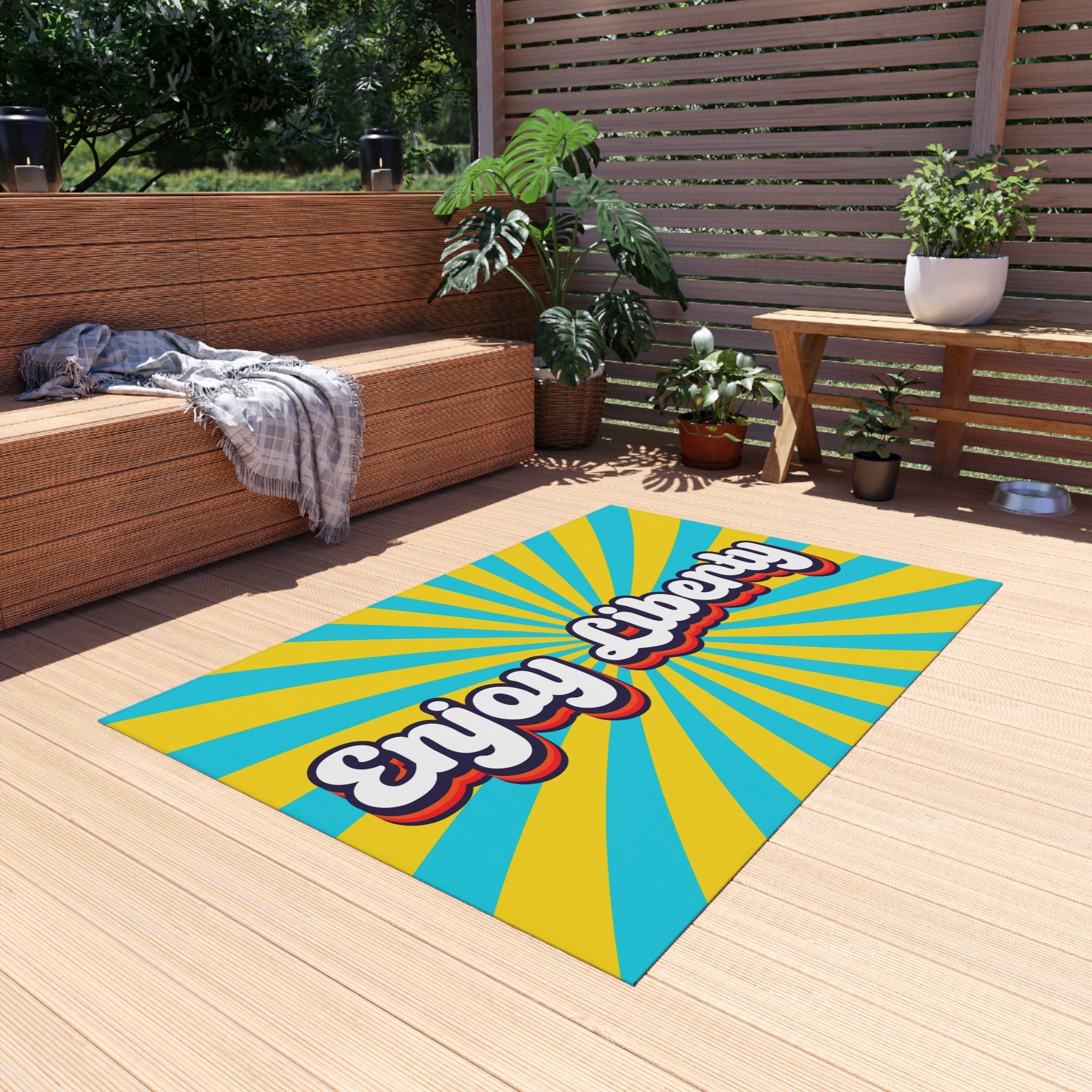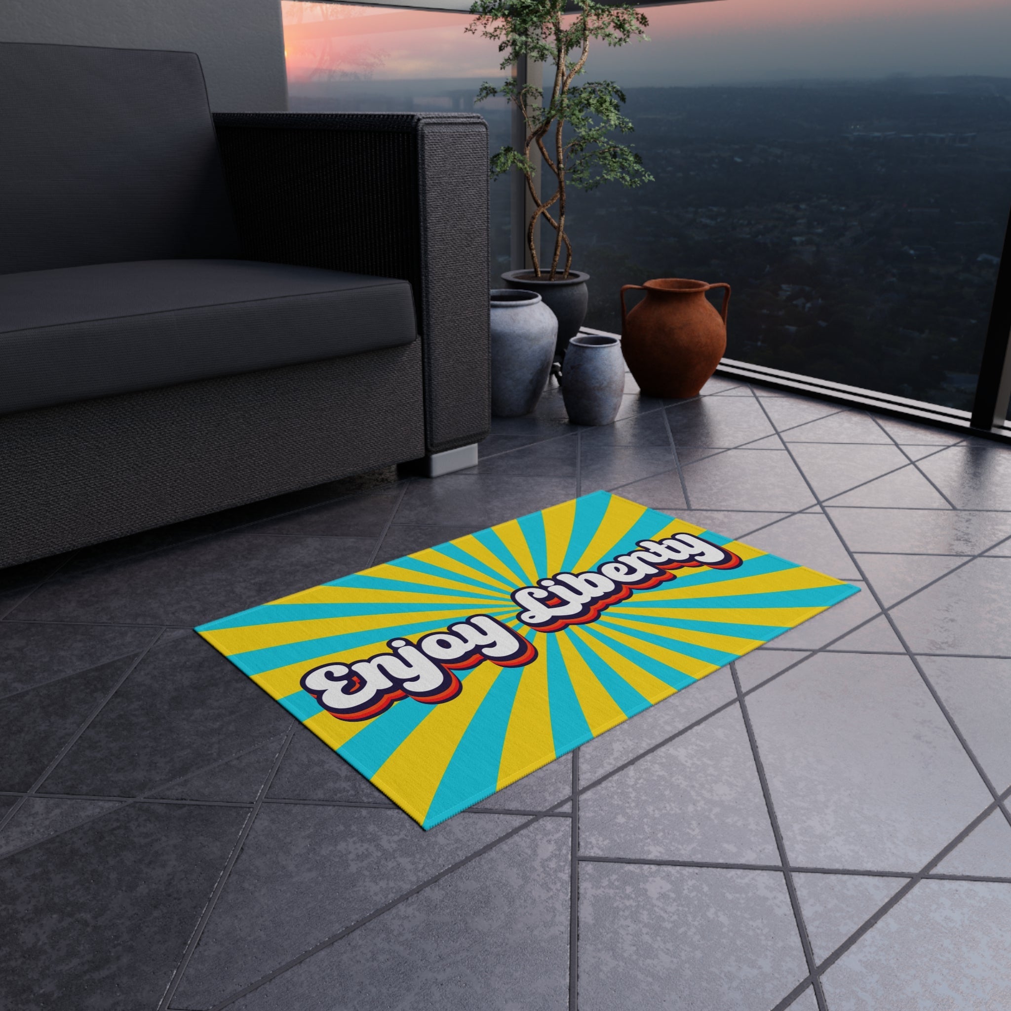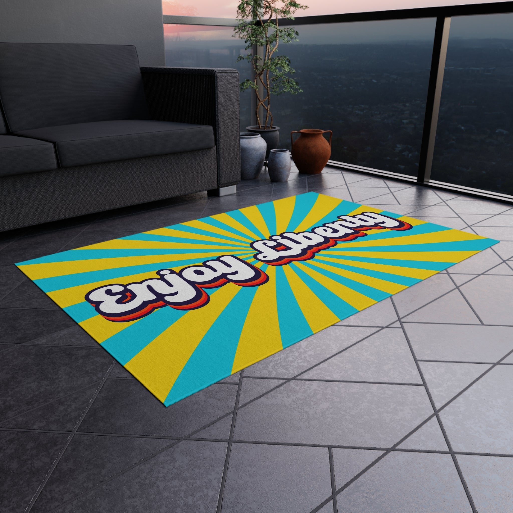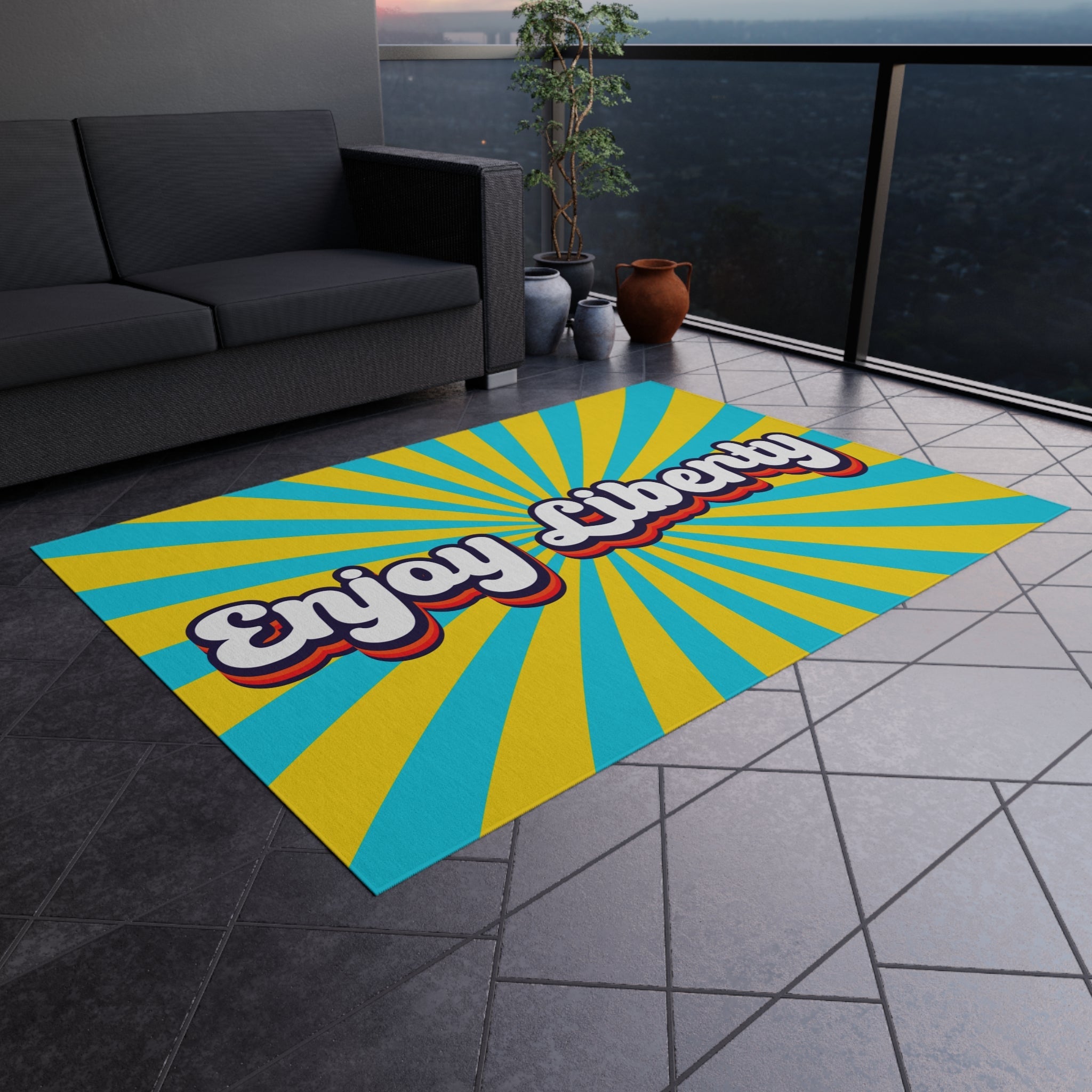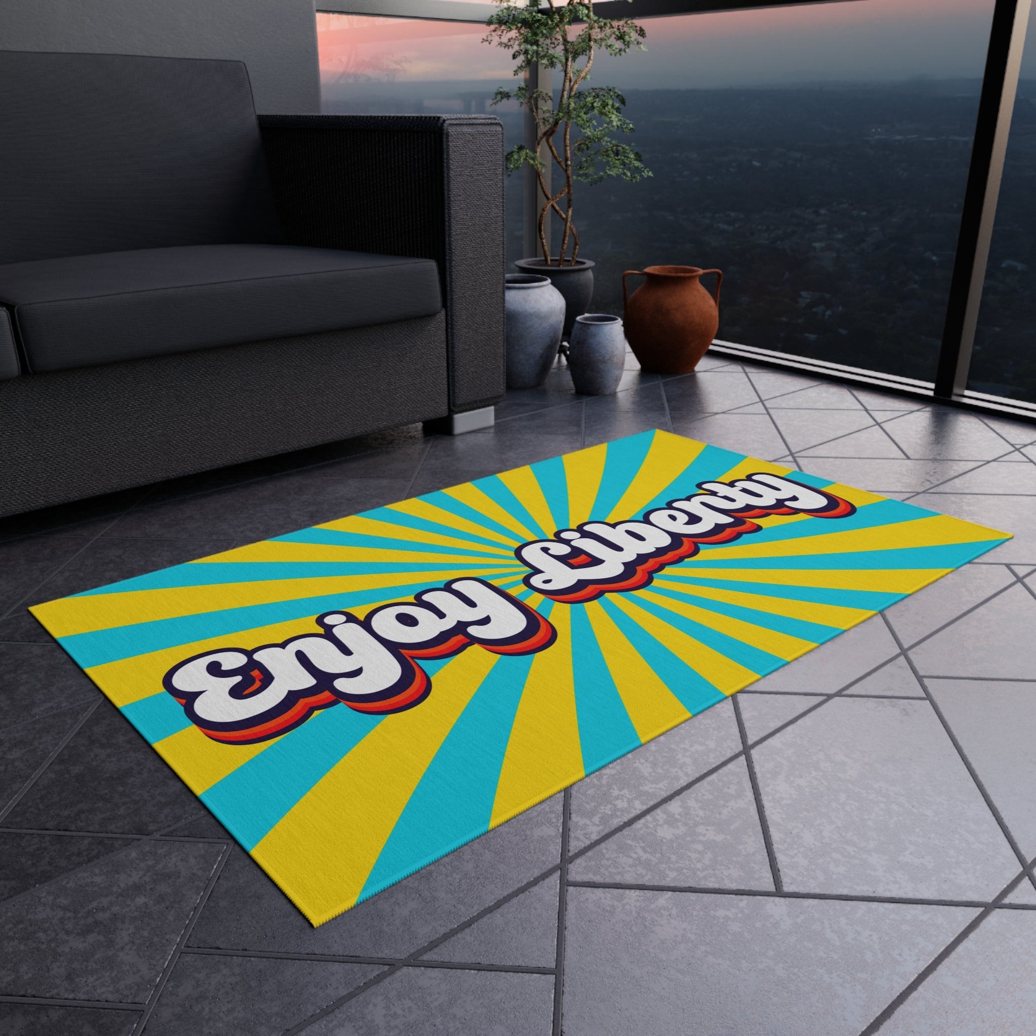 Keywords: Enjoy Liberty, Retro Outdoor Rug, libertarian, freedom lovers, AP4Libertyshop.com, durable, easy-to-clean, non-slip, weather-resistant.