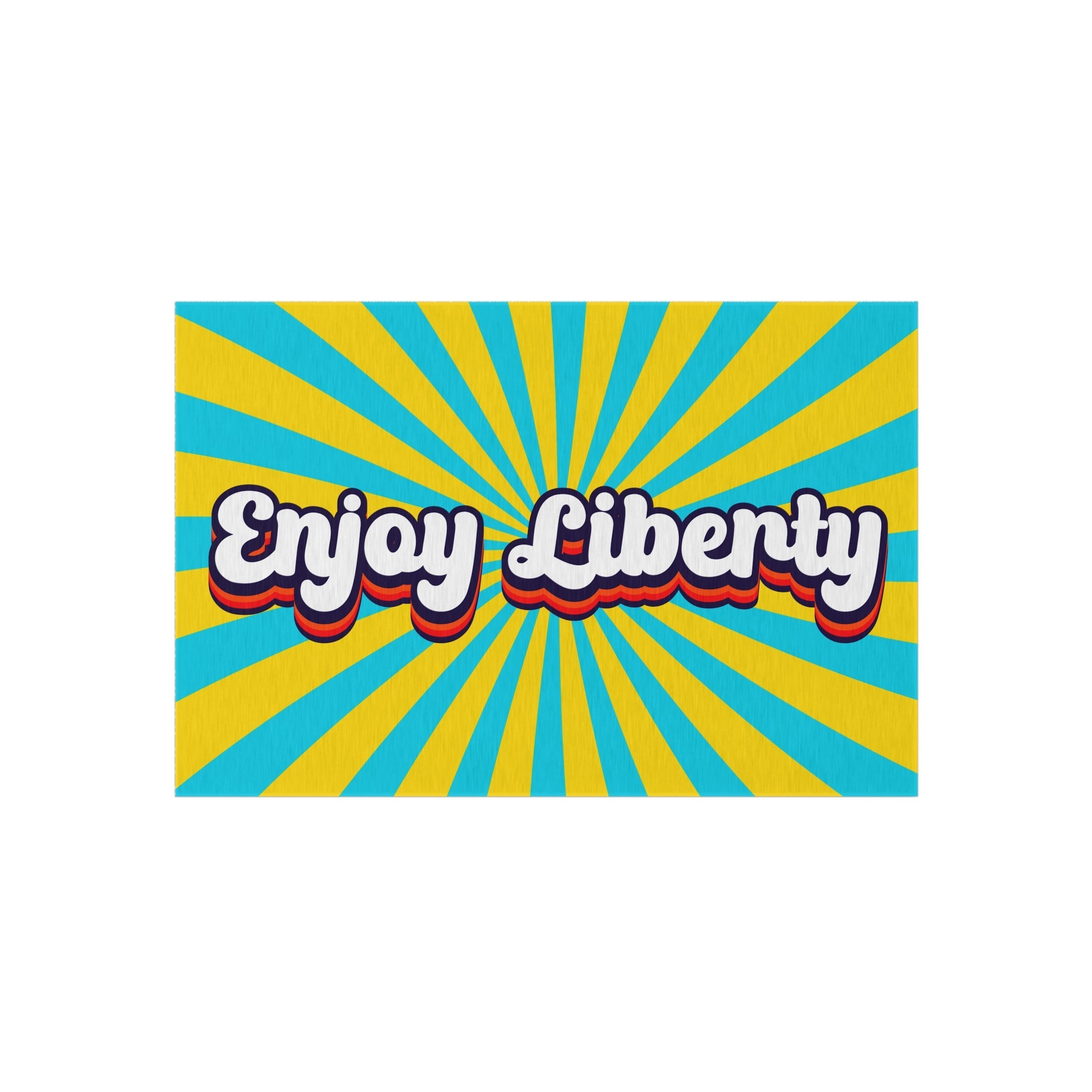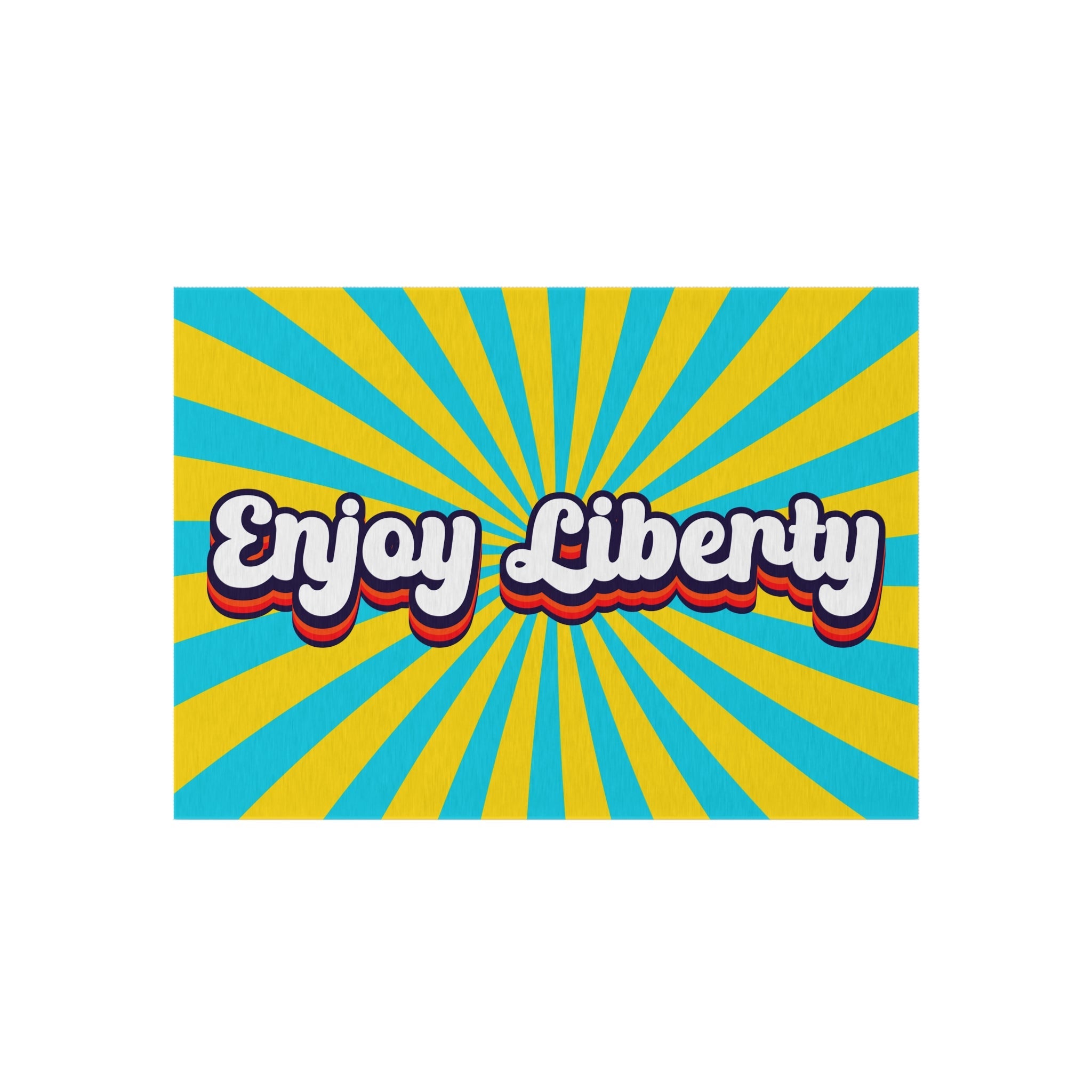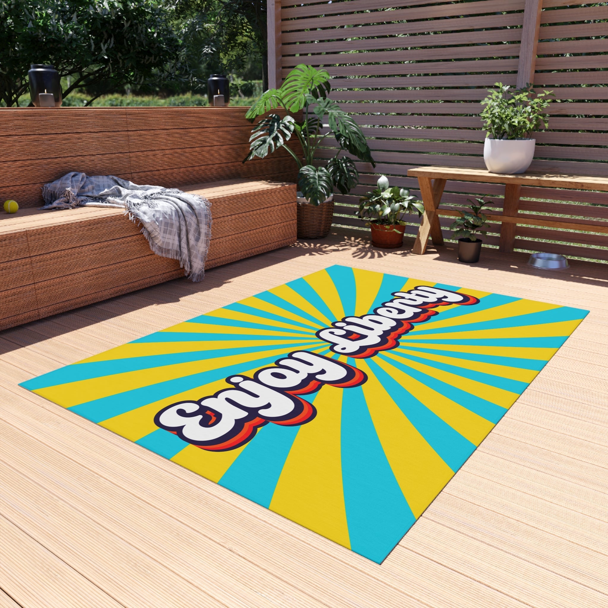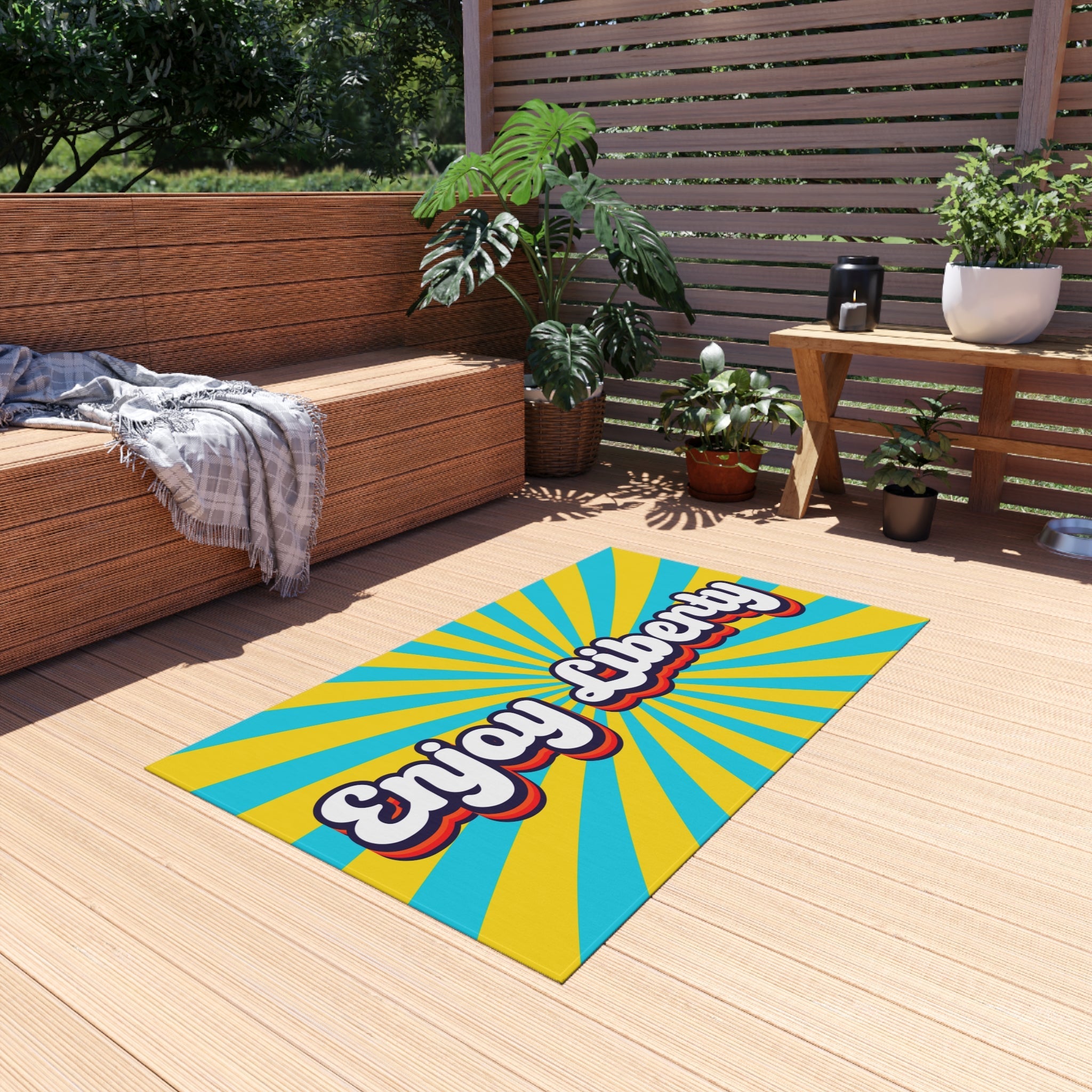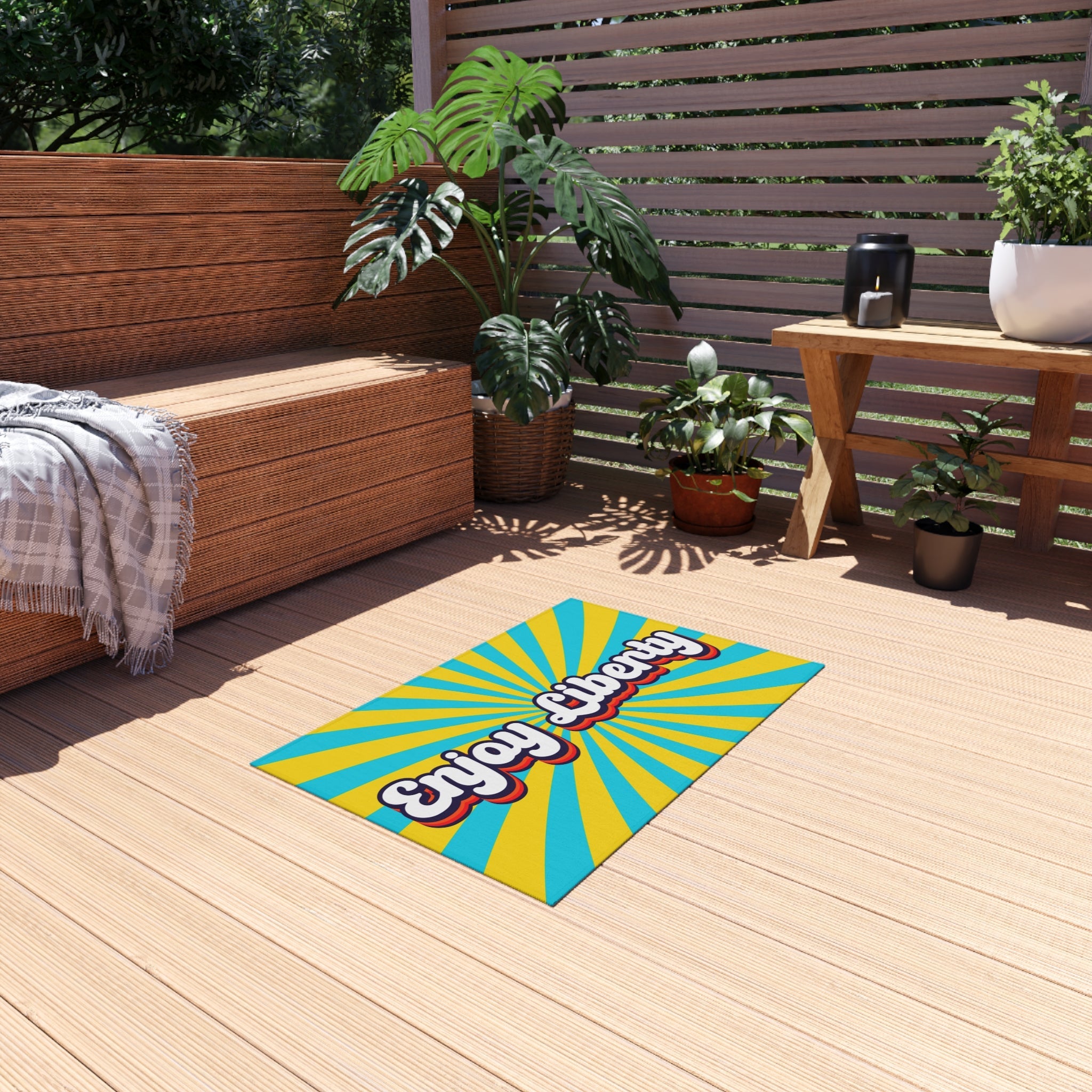 Keywords: Enjoy Liberty, Retro Outdoor Rug, libertarian, freedom lovers, AP4Libertyshop.com, durable, easy-to-clean, non-slip, weather-resistant.