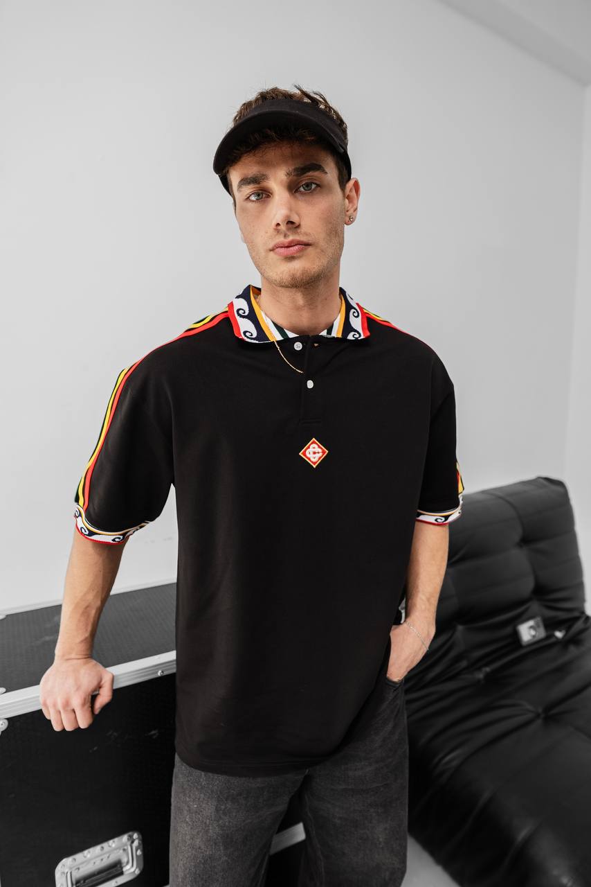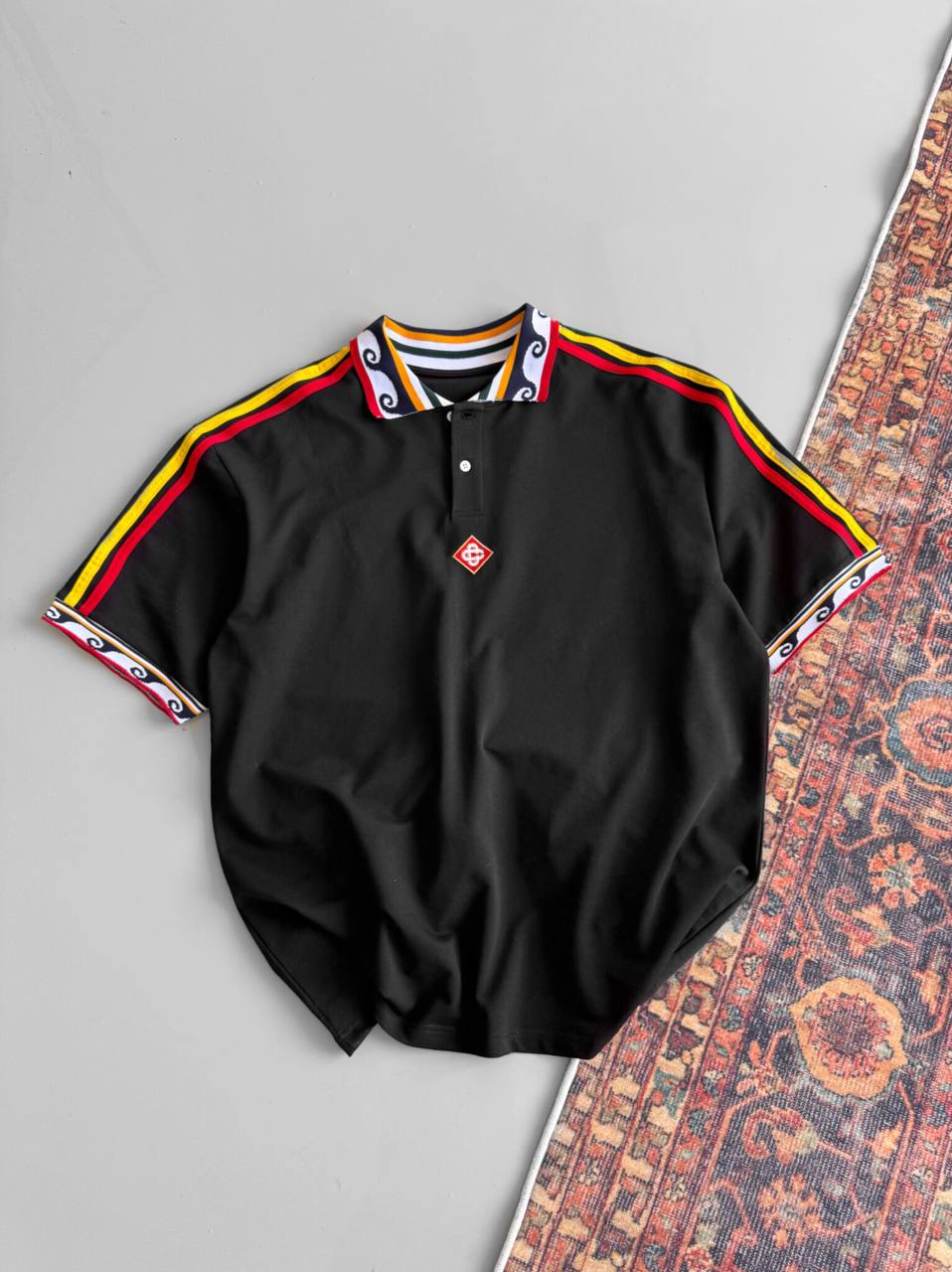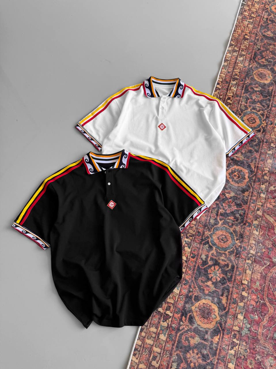 Ethnic Trim Oversized Polo T-Shirt – White Unisex Streetwear ‐ Black / S