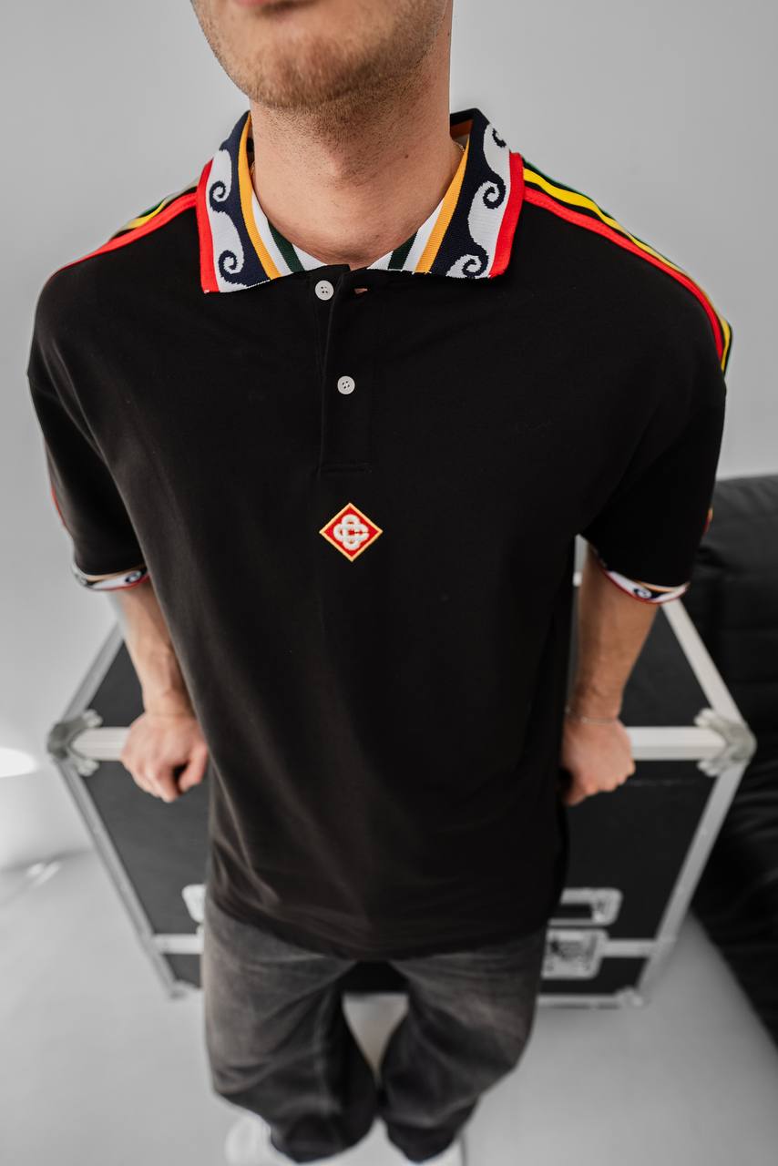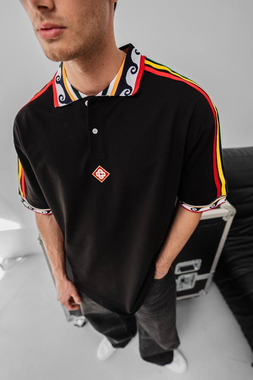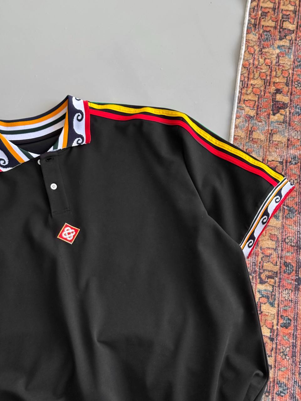 Ethnic Trim Oversized Polo T-Shirt – White Unisex Streetwear ‐ Black / S