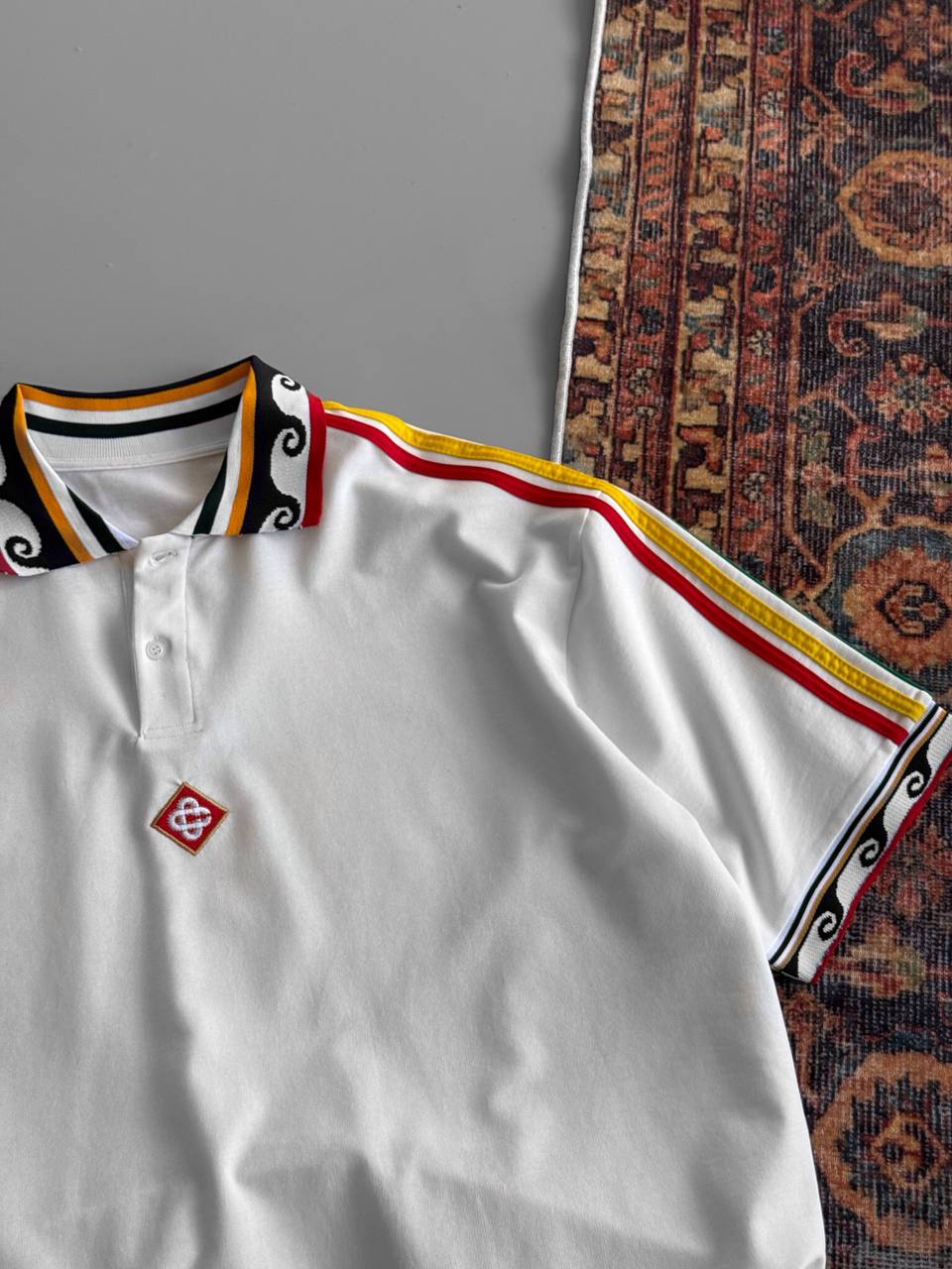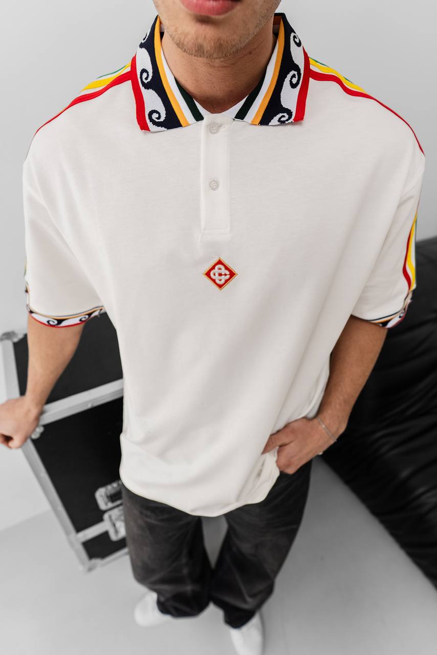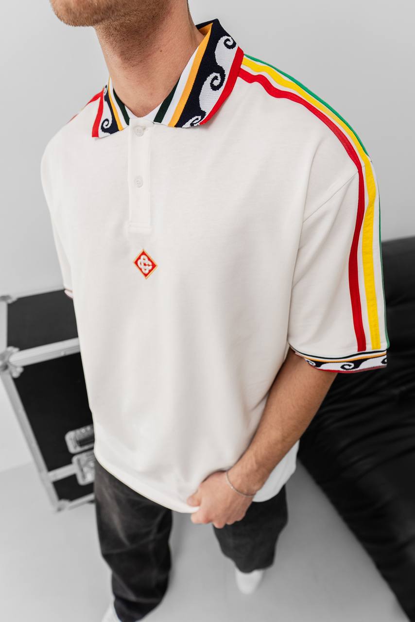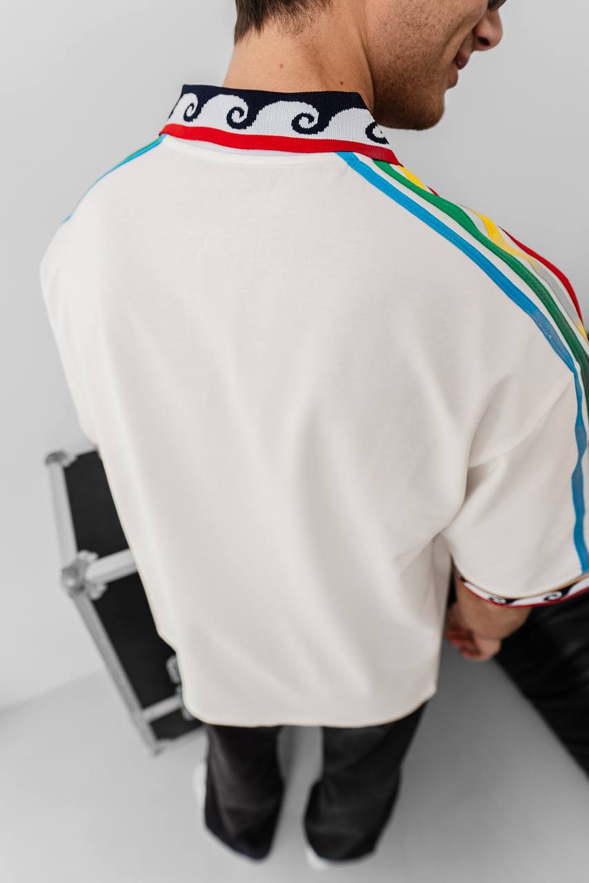 Ethnic Trim Oversized Polo T-Shirt – Unisex White Streetwear