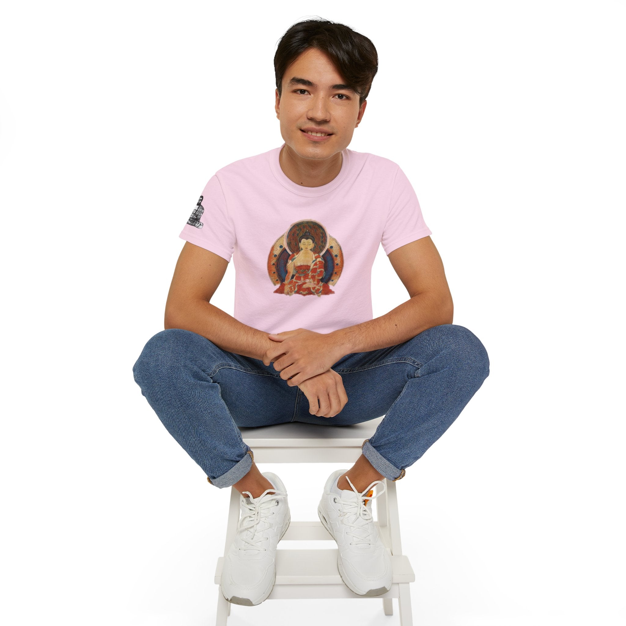 Fine Art Buddha Oil Paint Print Unisex Ultra Cotton Tee ‐ Light Pink / M
