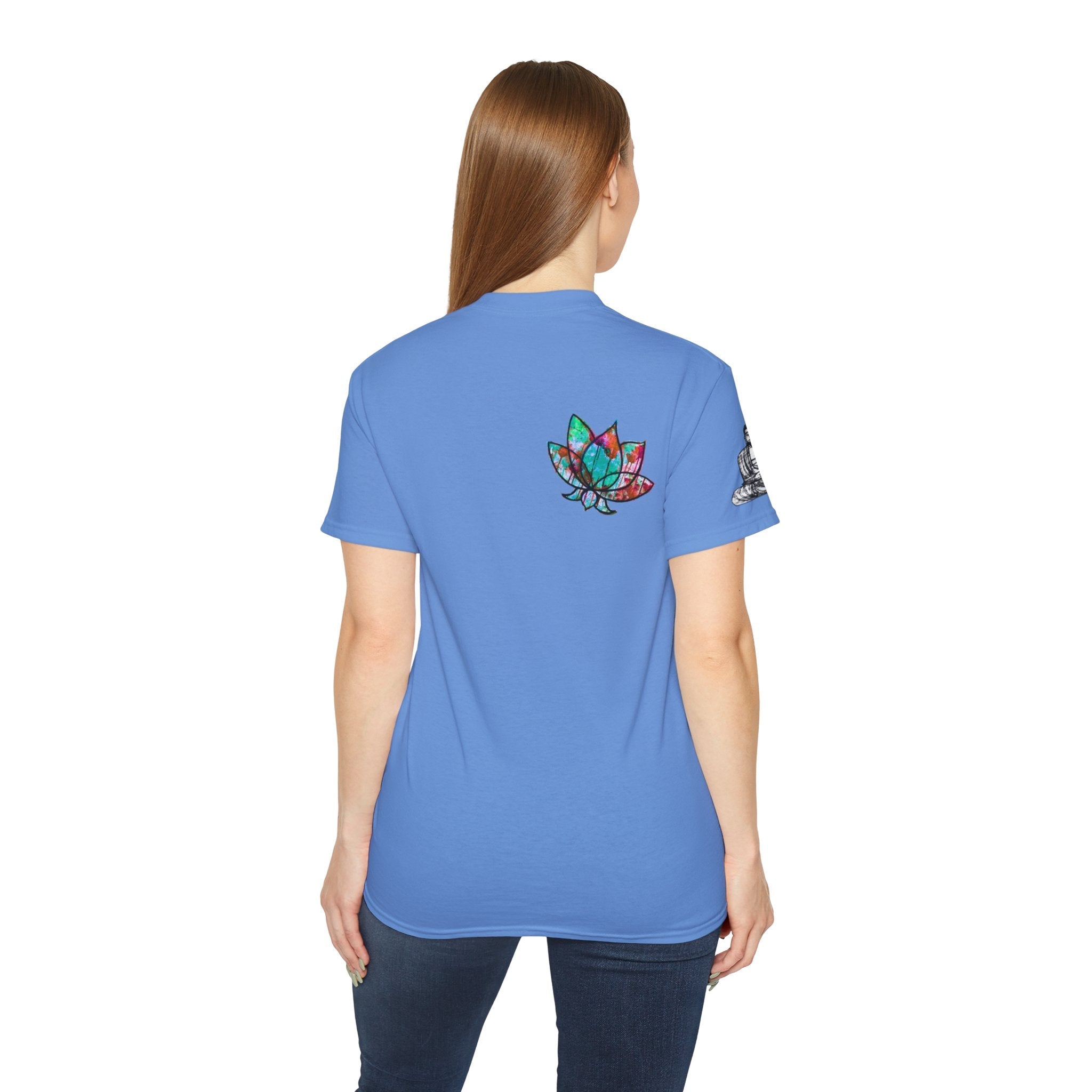 Fine Art Buddha Oil Paint Print Unisex Ultra Cotton Tee ‐ Carolina Blue / S