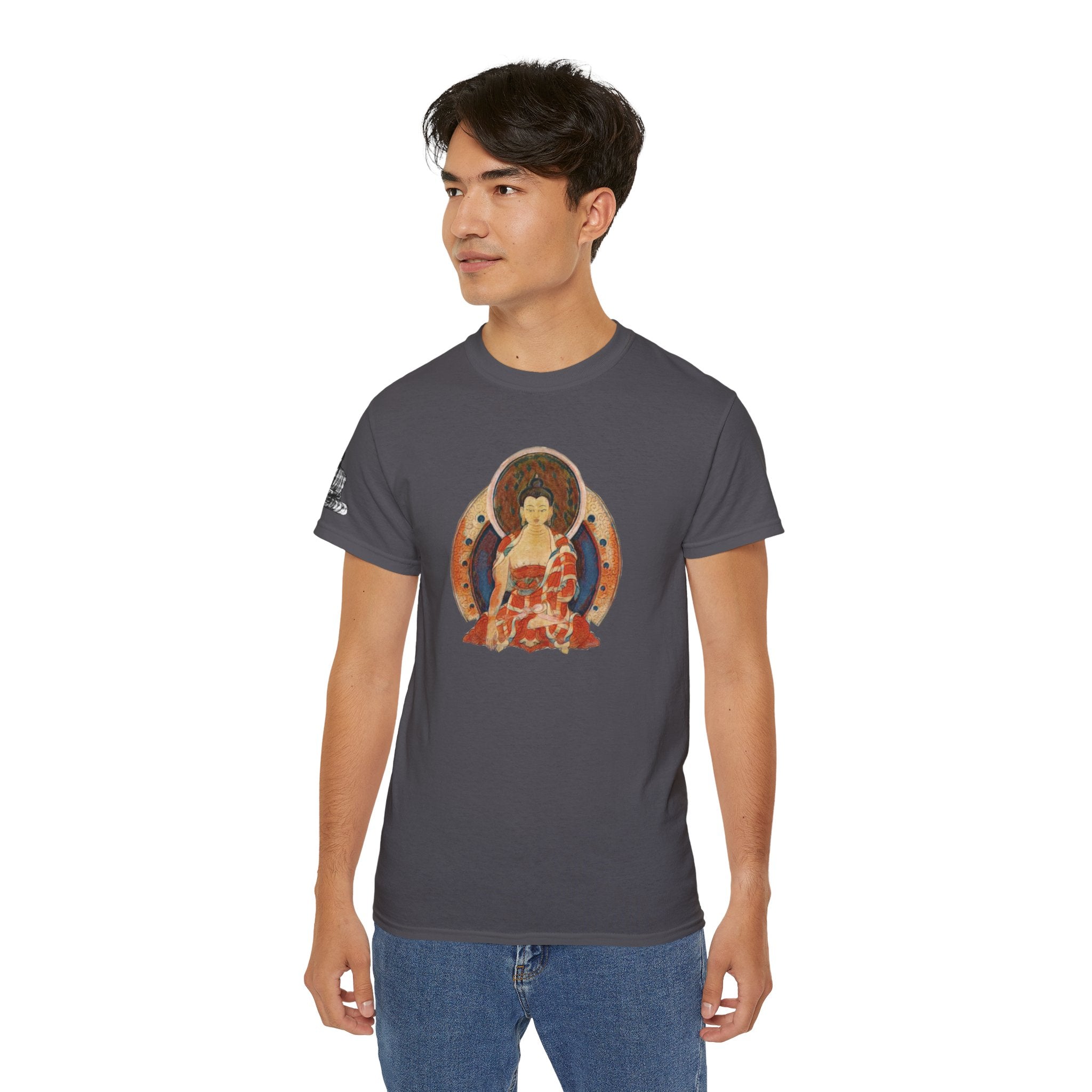 Fine Art Buddha Oil Paint Print Unisex Ultra Cotton Tee ‐ Charcoal / S