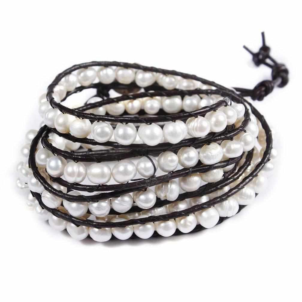 Five Wrap Leather Bracelet - Thailand ‐ Pearl