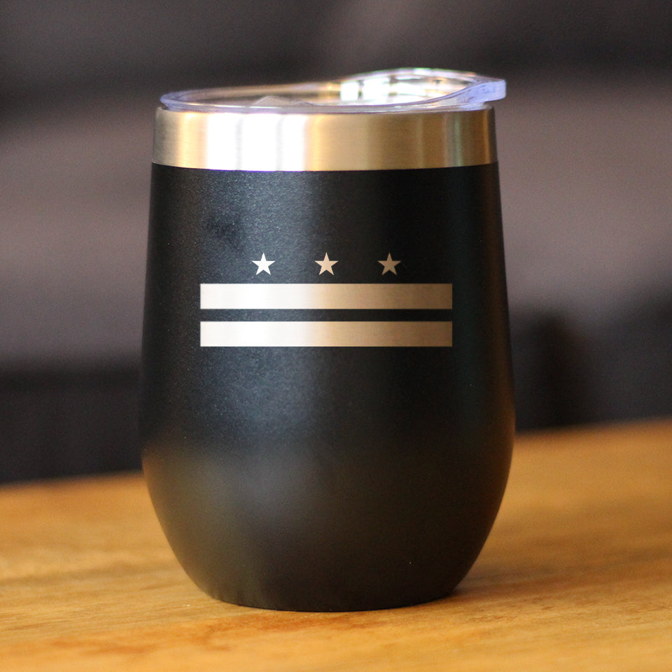 Flag of Washington DC - Wine Tumbler Glass with Sliding Lid - Stainless Steel Insulated Mug - Decor and Gifts for Washingtonians ‐ Black