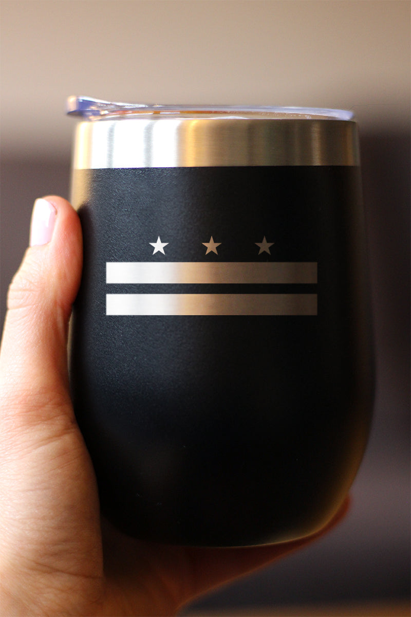 Flag of Washington DC - Wine Tumbler Glass with Sliding Lid - Stainless Steel Insulated Mug - Decor and Gifts for Washingtonians
