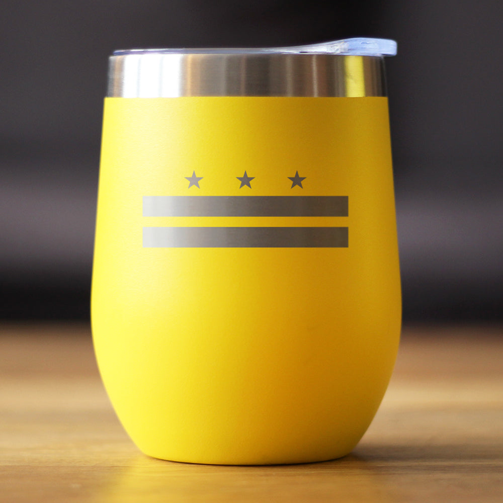 Flag of Washington DC - Wine Tumbler Glass with Sliding Lid - Stainless Steel Insulated Mug - Decor and Gifts for Washingtonians ‐ Yellow
