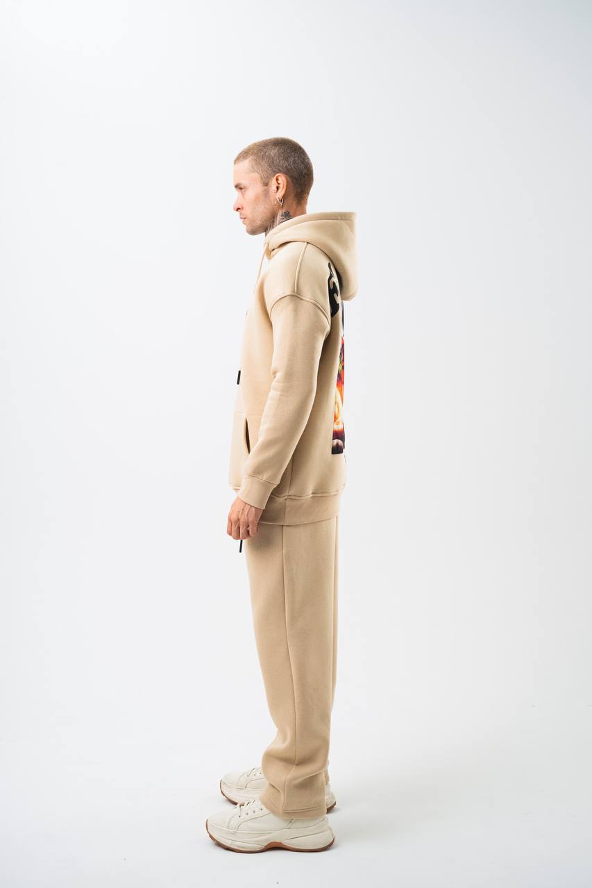 Flaming "Joker" Graphic Unisex Hoodie – Edgy Streetwear ‐ Beige / L