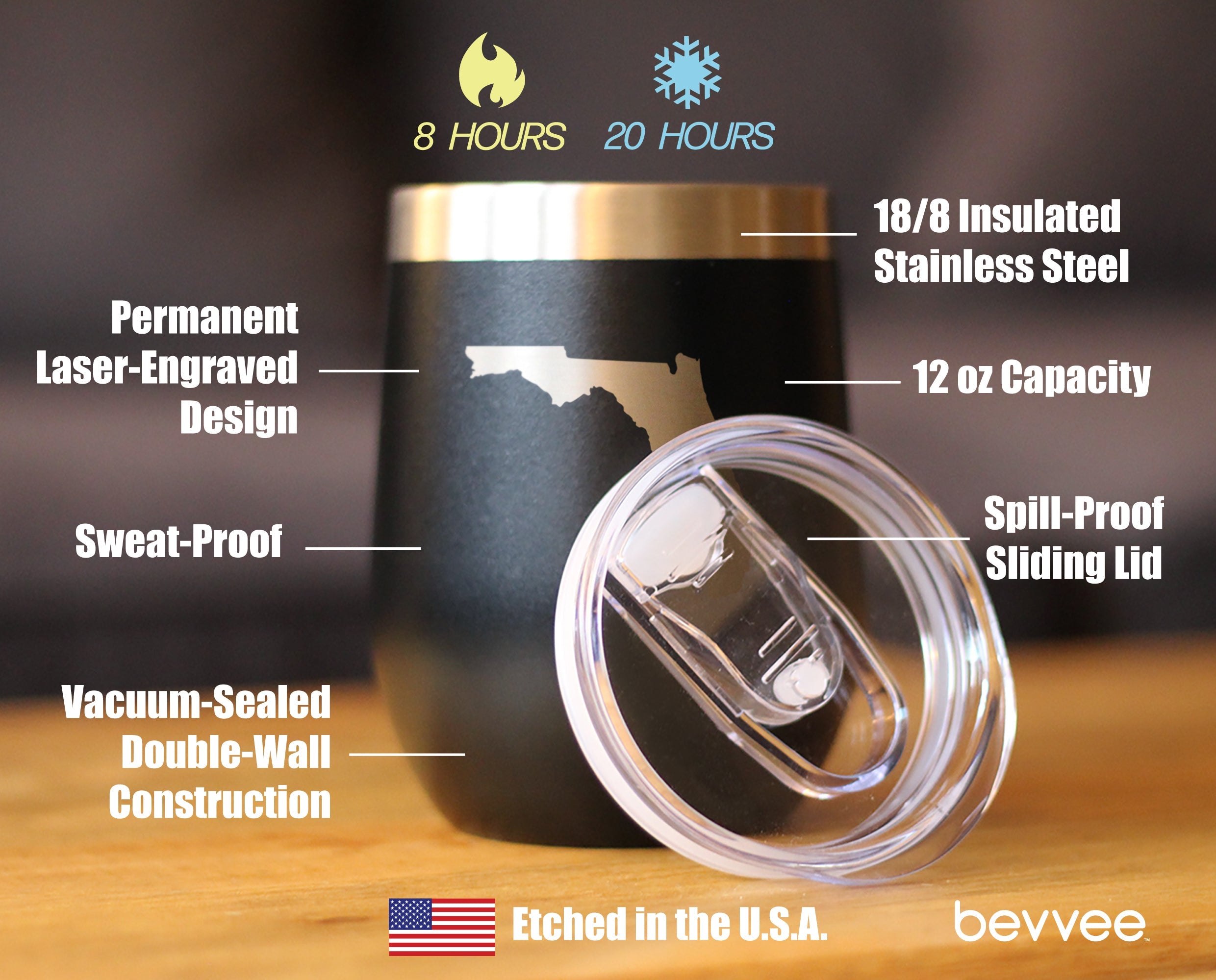 Florida State Outline - Wine Tumbler Glass with Sliding Lid - Stainless Steel Insulated Mug - State Themed Outdoor Camping Gifts For Floridians ‐ Black