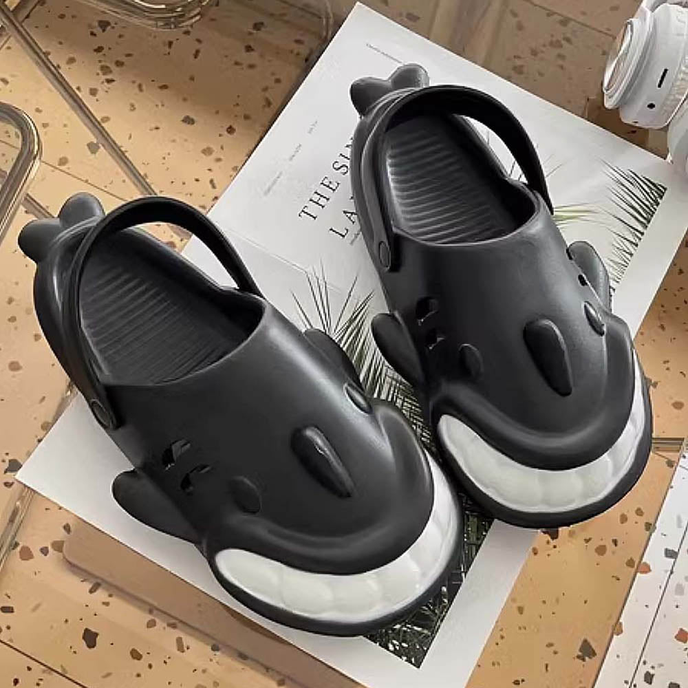 Funny Cartoon Big Mouth Shark Slippers | ZAKAPOP ‐ Black / 5.5-6.5 Women/ 4-5 Men
