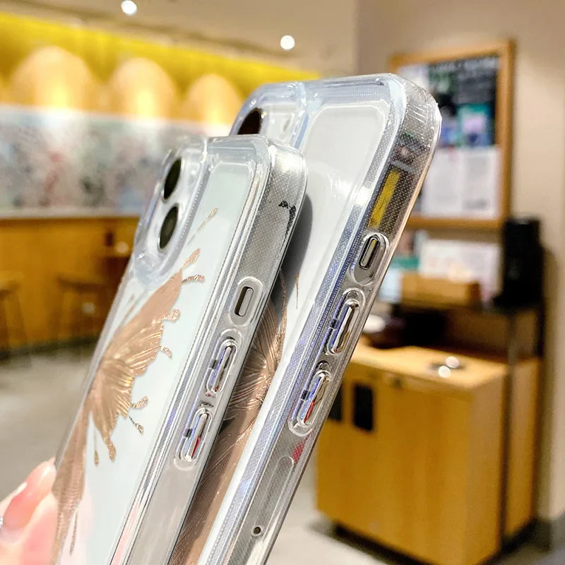 Gold Pink Butterfly Phone Case For iPhone