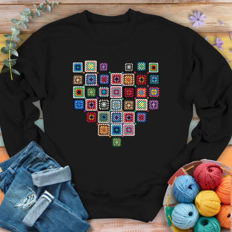 Granny Squares Heart Sweatshirt ‐ 5XL / Black