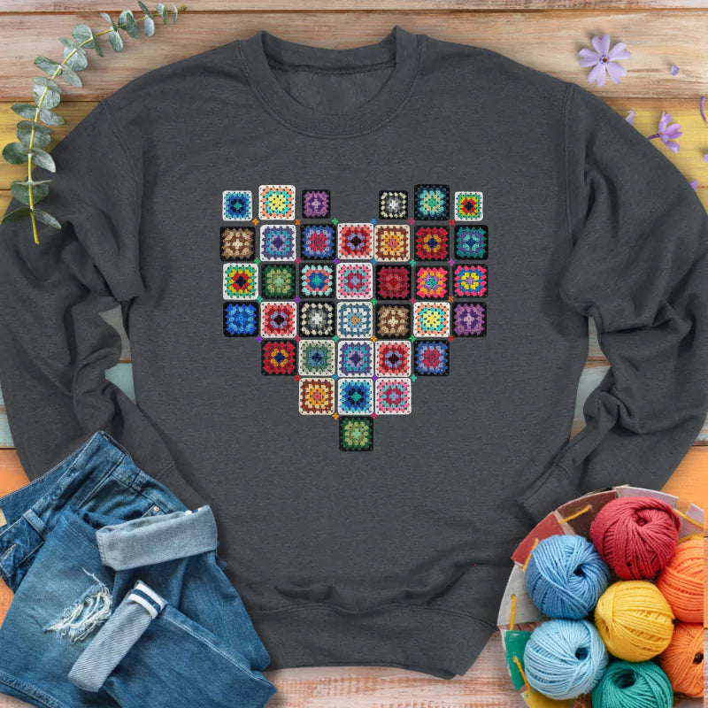 Granny Squares Heart Sweatshirt ‐ 4XL / Dark Heather