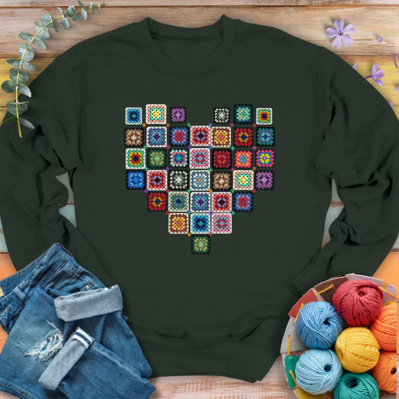 Granny Squares Heart Sweatshirt ‐ S / Forest Green
