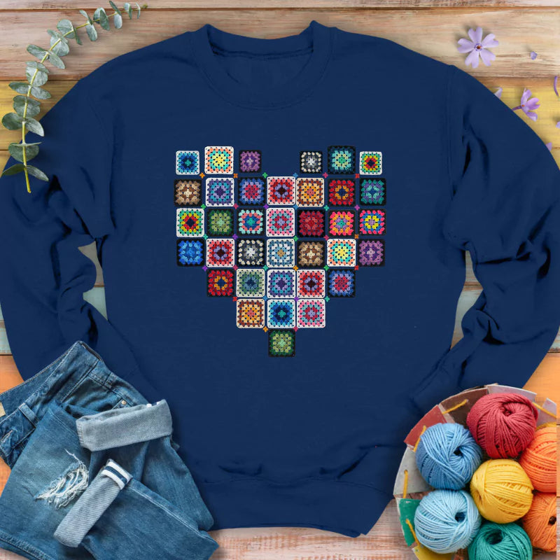 Granny Squares Heart Sweatshirt ‐ 4XL / Navy