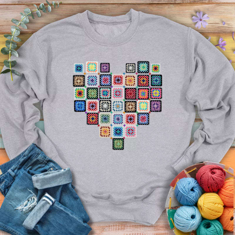 Granny Squares Heart Sweatshirt ‐ L / Sport Grey