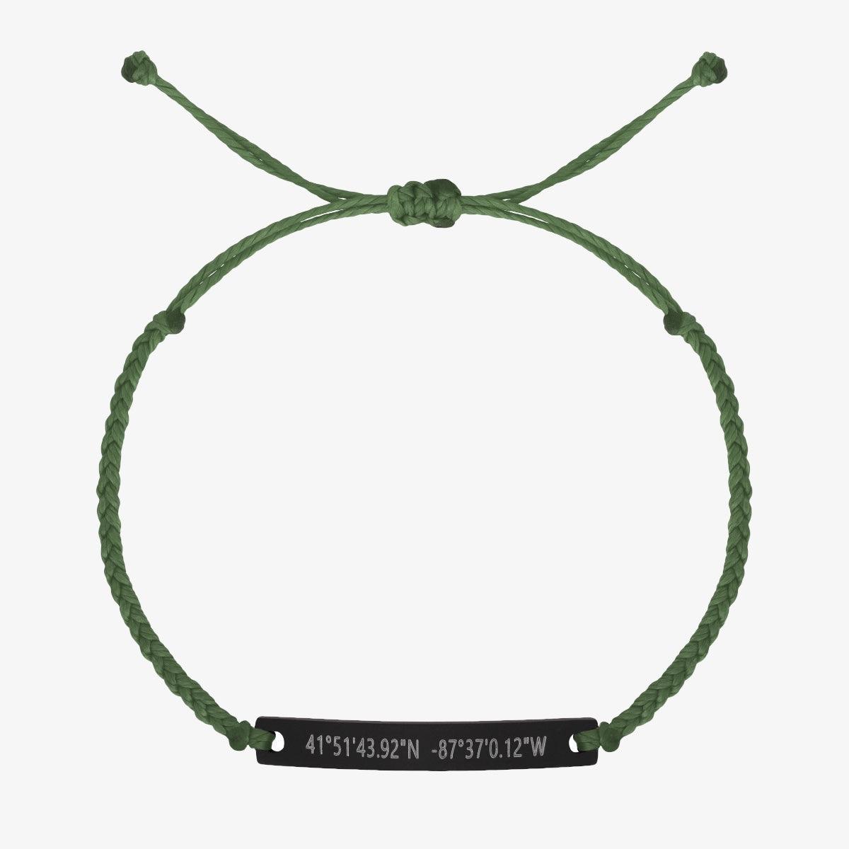 Green Custom Braided Bracelet ‐ MATTE BLACK BAR