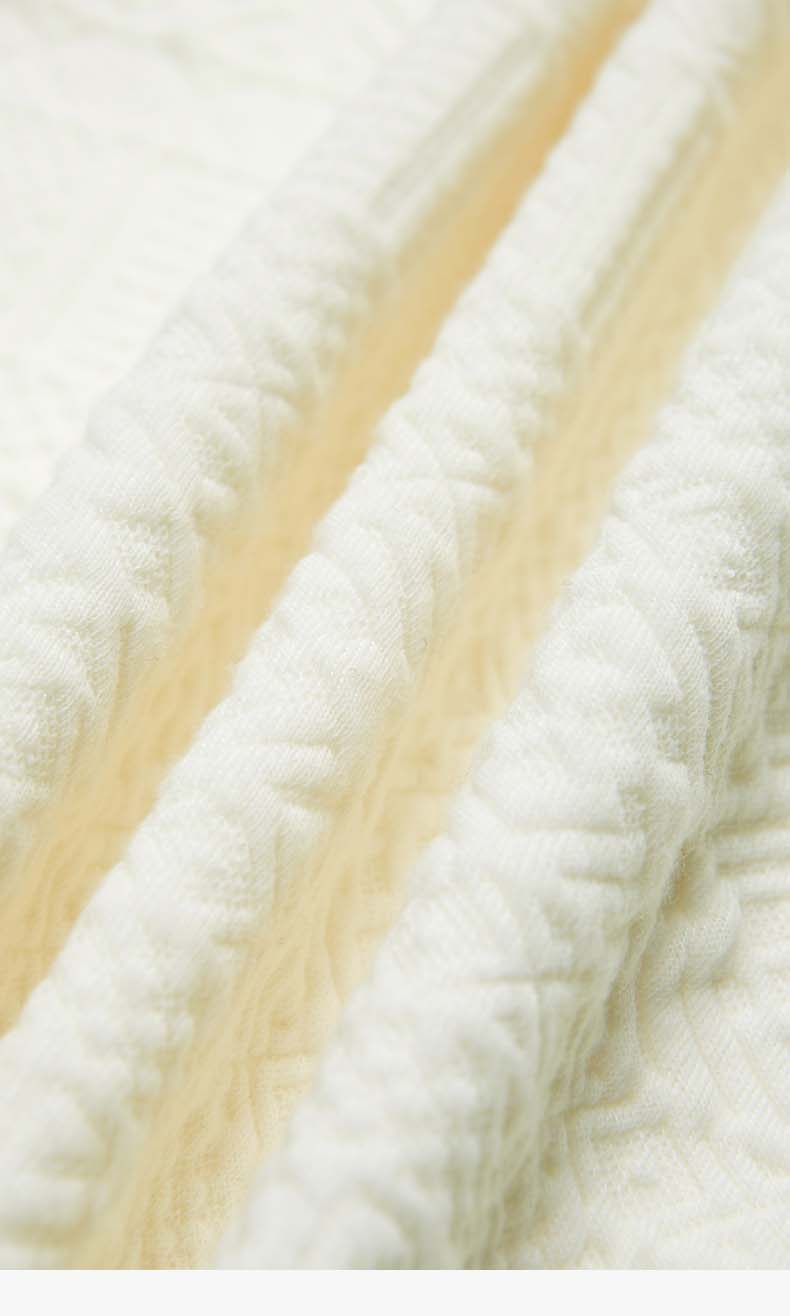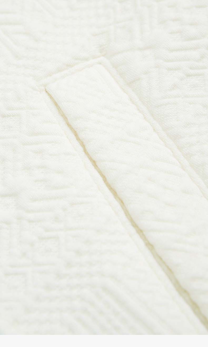 - Off white jacket with M font logo embroidery design on the chest and green side infused colors for casual urban look