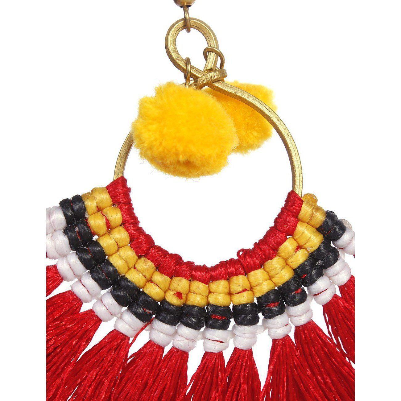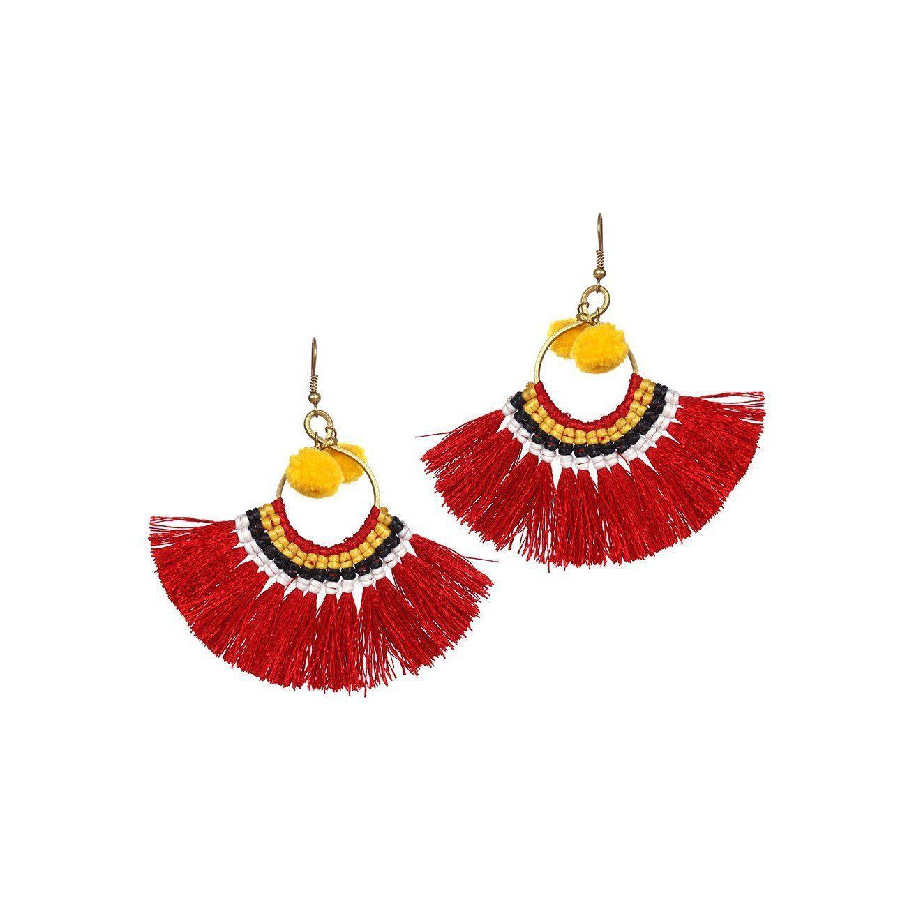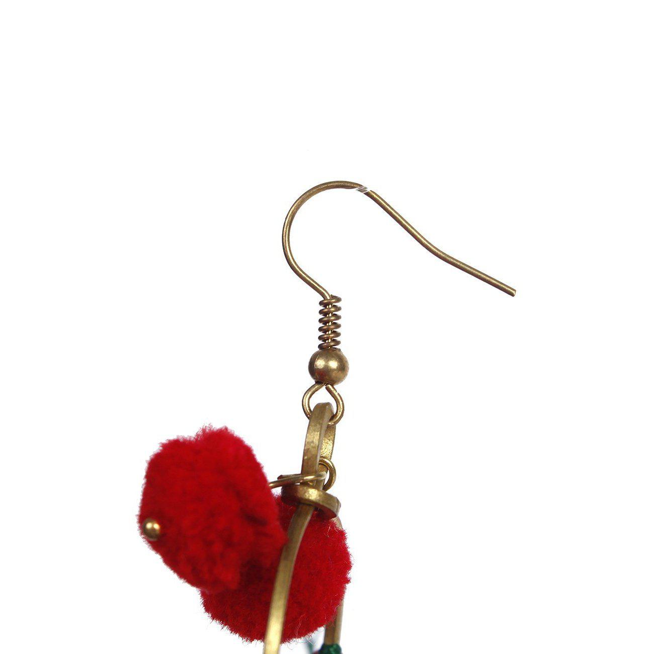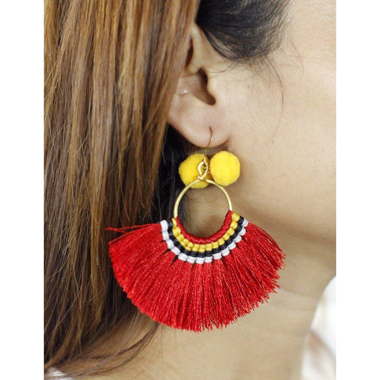 Half Moon PomPom Earrings - Thailand ‐ Red