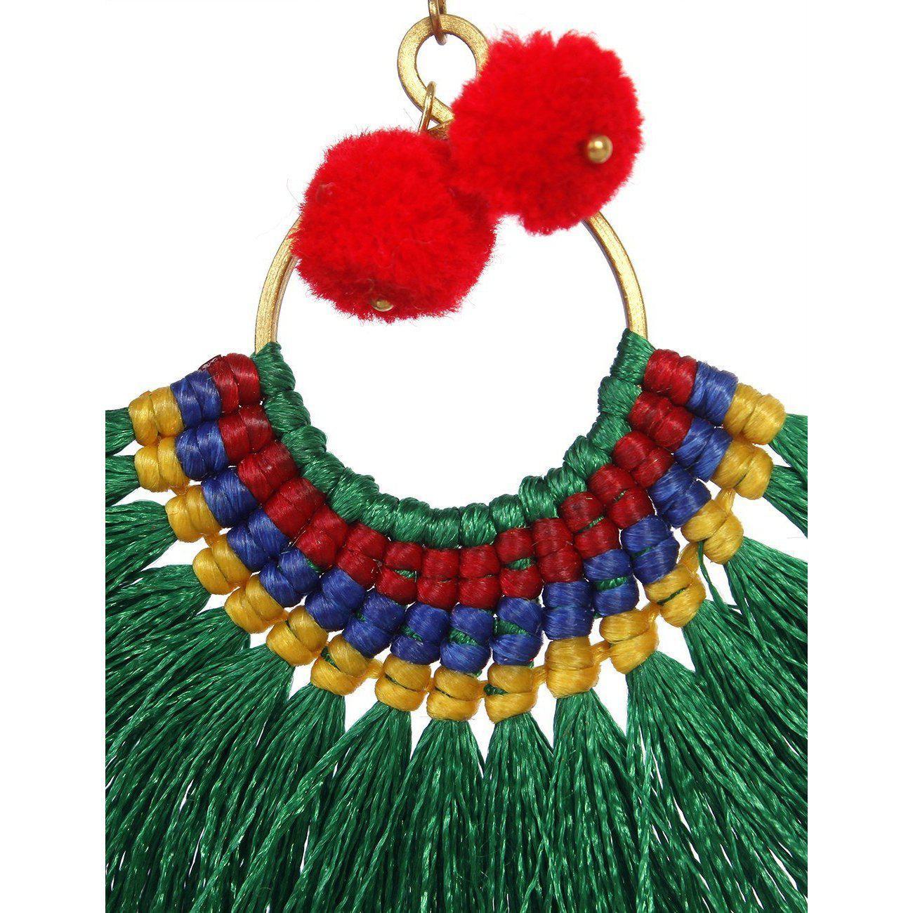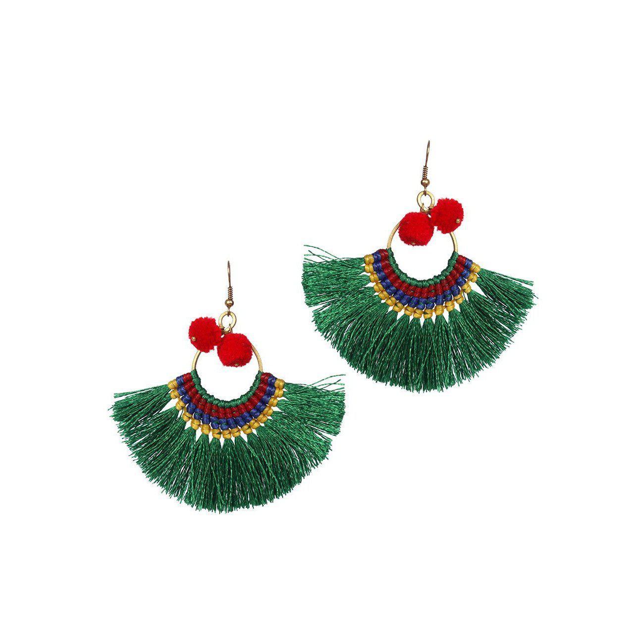 Half Moon PomPom Earrings - Thailand ‐ Green