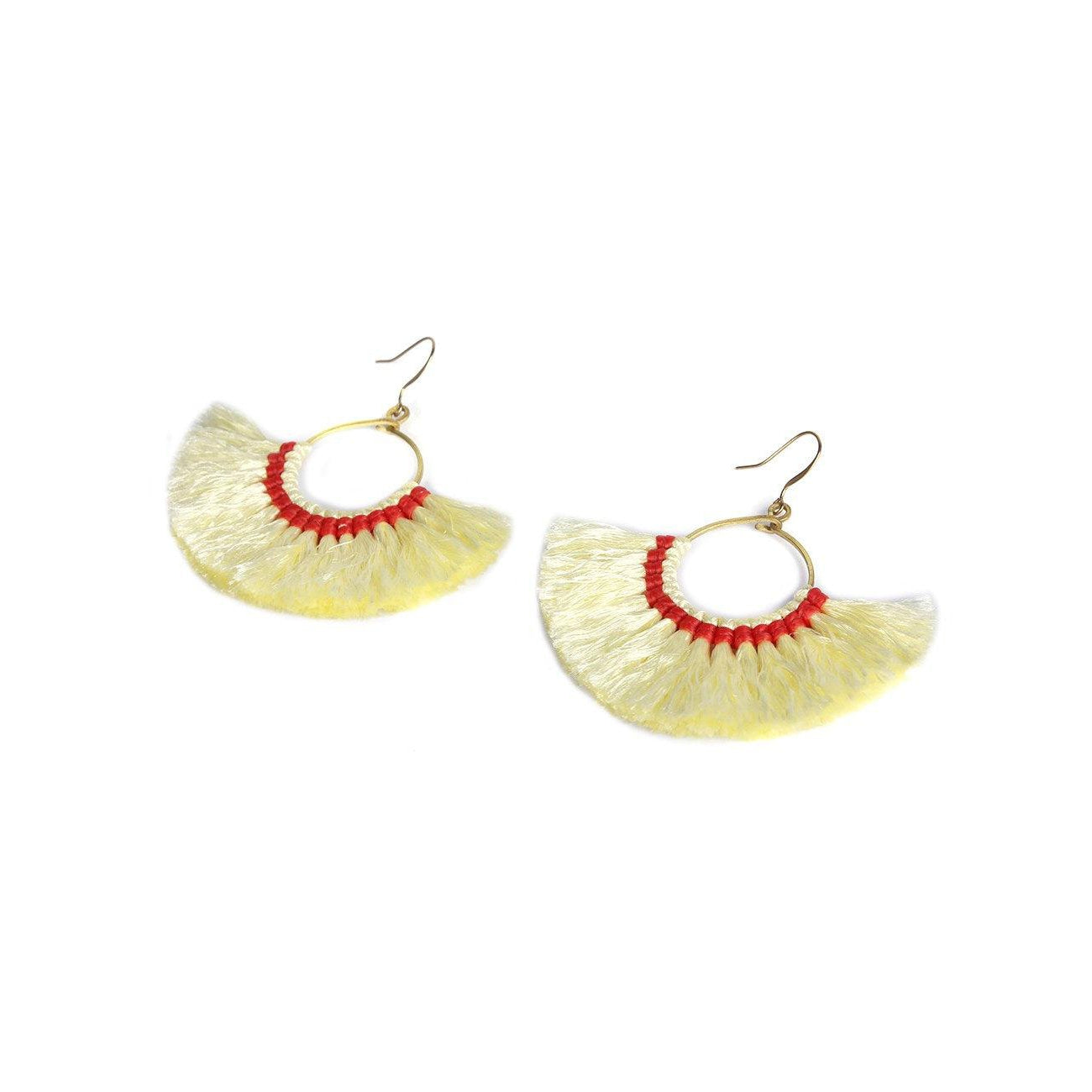 Half Moon Silk Tassel Earrings - Thailand ‐ Beige