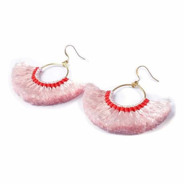 Half Moon Silk Tassel Earrings - Thailand ‐ Magenta