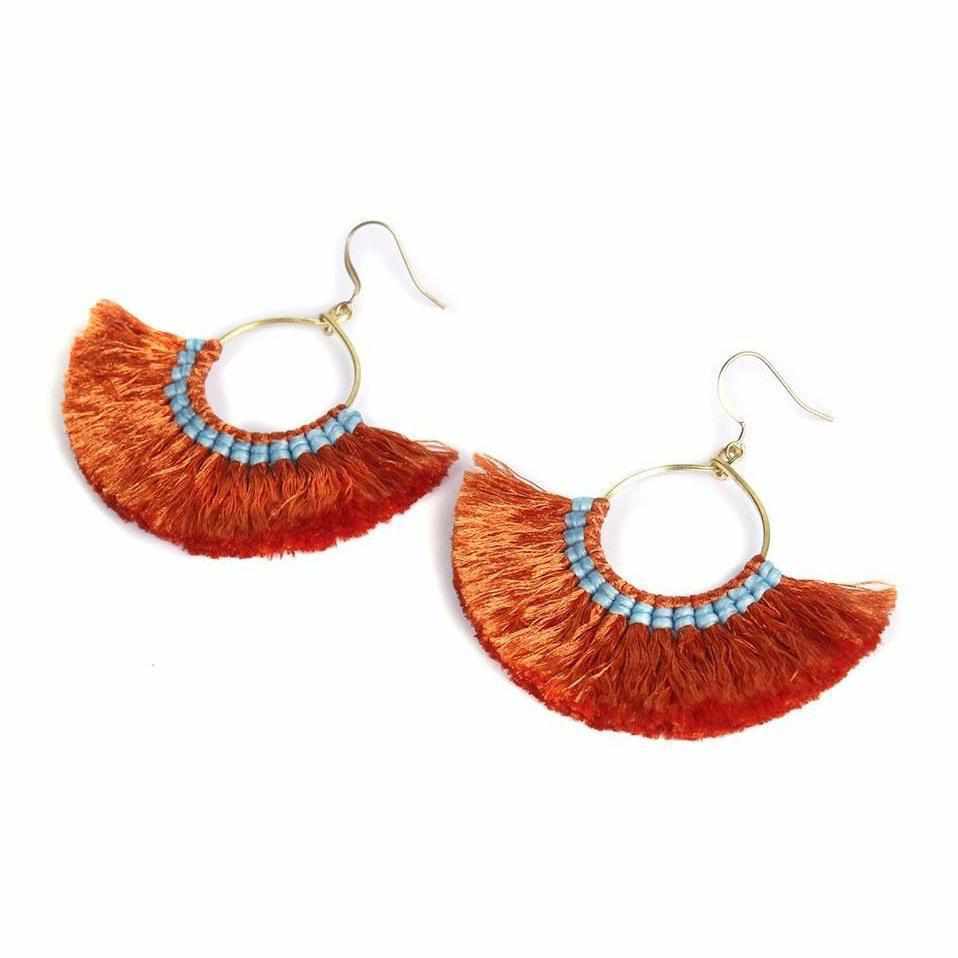 Half Moon Silk Tassel Earrings - Thailand ‐ Orange