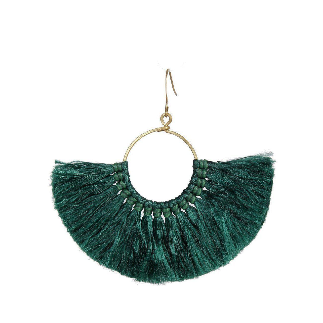 Half Moon Silk Tassel Earrings - Thailand ‐ Green
