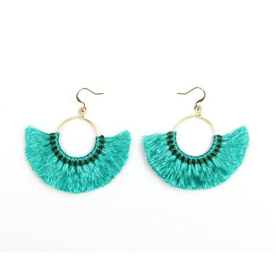Half Moon Silk Tassel Earrings - Thailand ‐ Turquoise