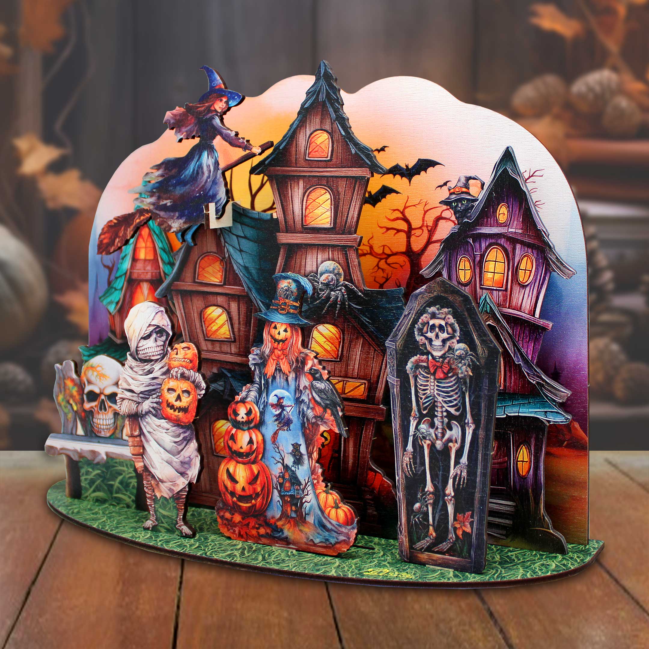 Halloween Spooky Village Eco Wood Decorative Village Eco Wood Set by G. Debrekht - Halloween Decor - 852741-12