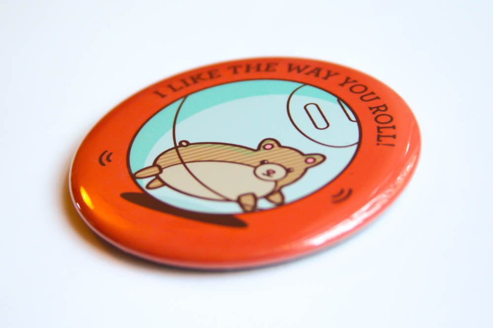 These buttons make awesome stocking stuffers, gifts, or party favors. Design features a little hamster running in his hamster ball. Available with or without the text that says "I Like The Way You Roll!" Choose from the drop down options.