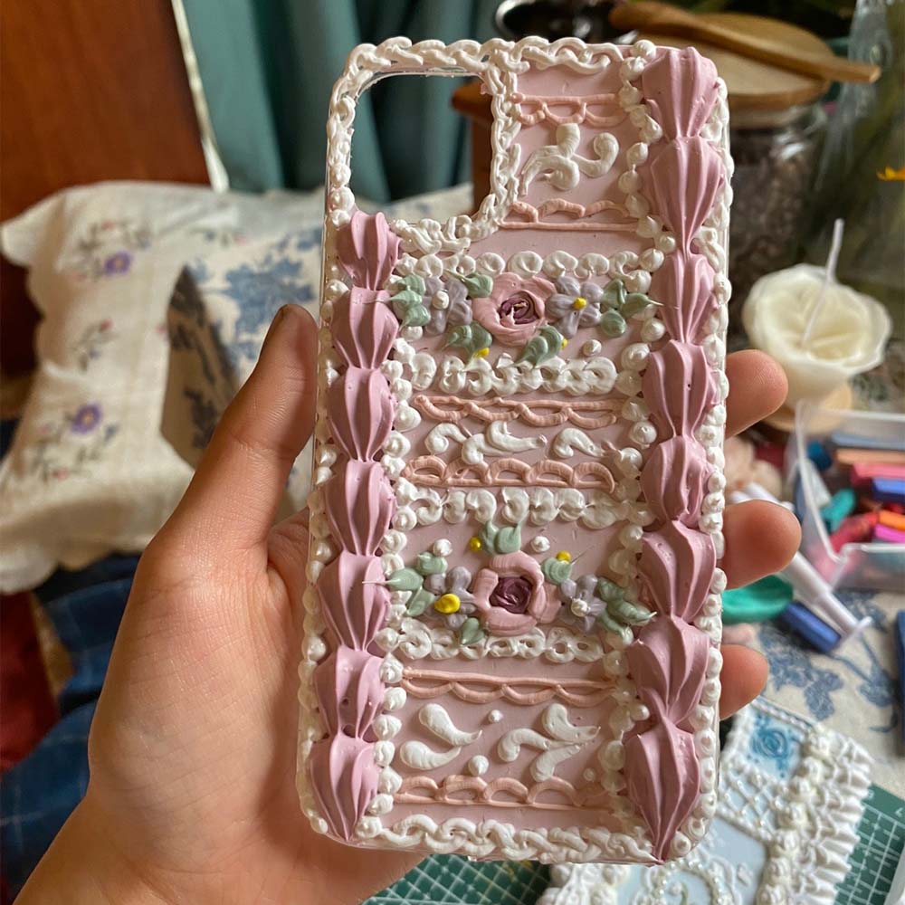 Materials: trinkets, cream glue, blank phone case