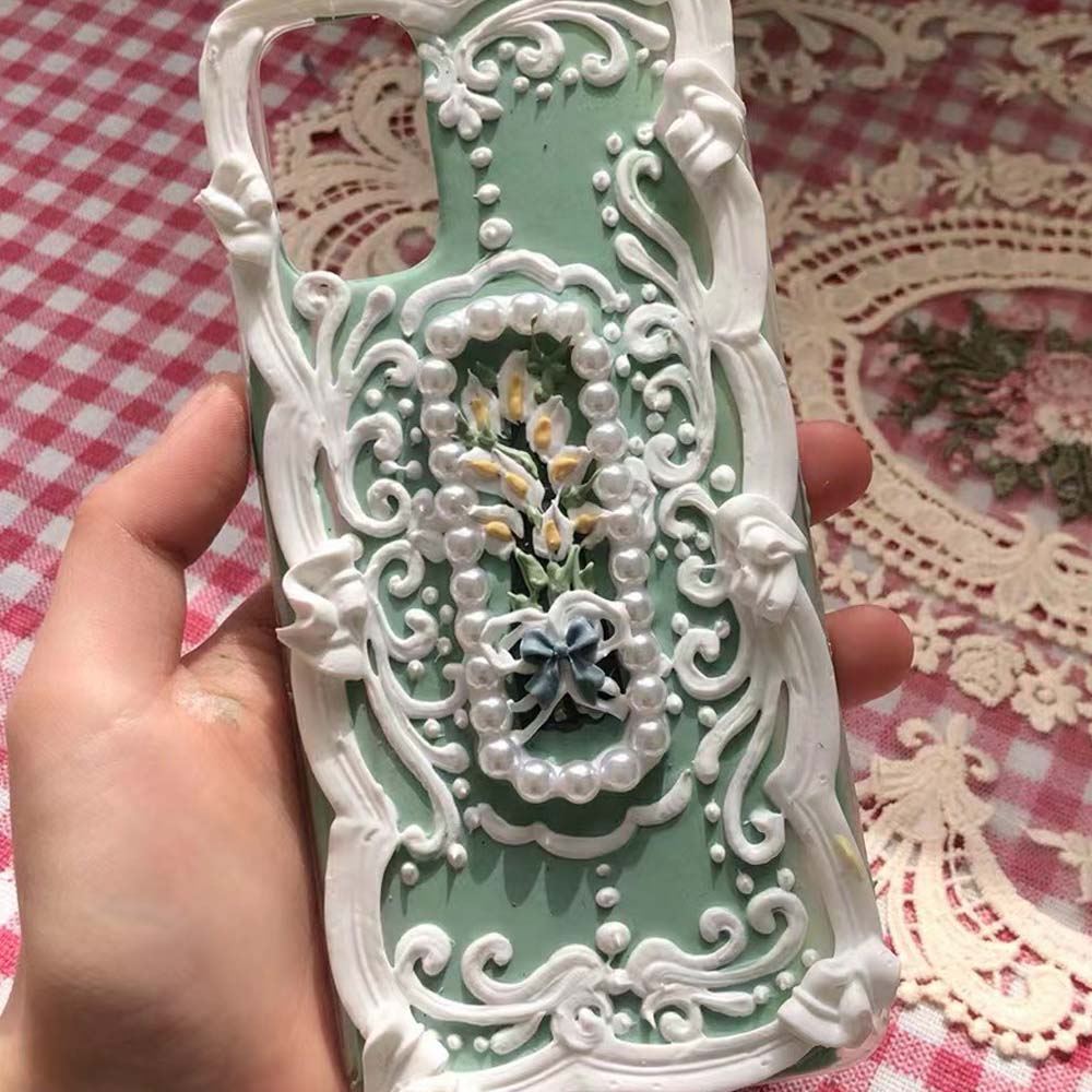 Handmade Flower 3d Oil Painting Retro Cream Mobile Phone Case (customizable) | ZAKAPOP ‐ Green calla lily / iPhone X