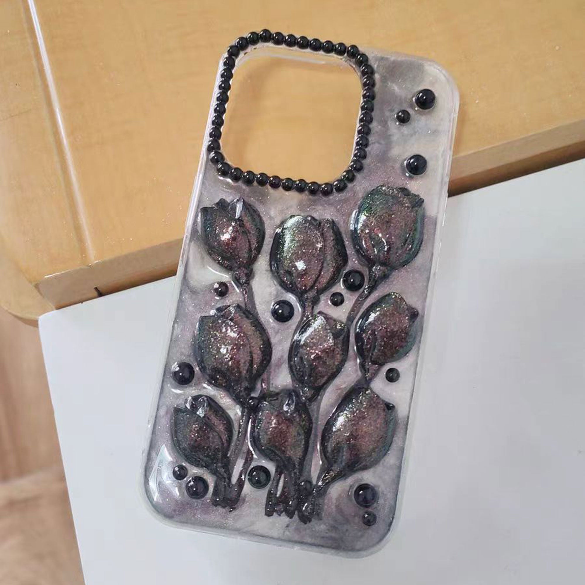 Handmade Glazed Tulip Flowers Phone Case for iPhone | ZAKAPOP ‐ Black / iPhone 14Pro Max