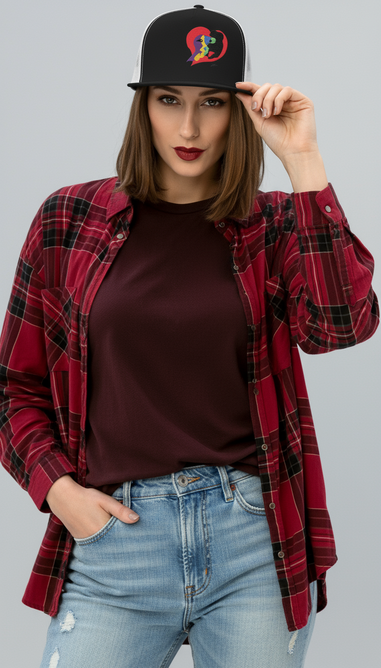 Heart La Mancha Collection Trucker Cap ‐ Black/ White/ Black
