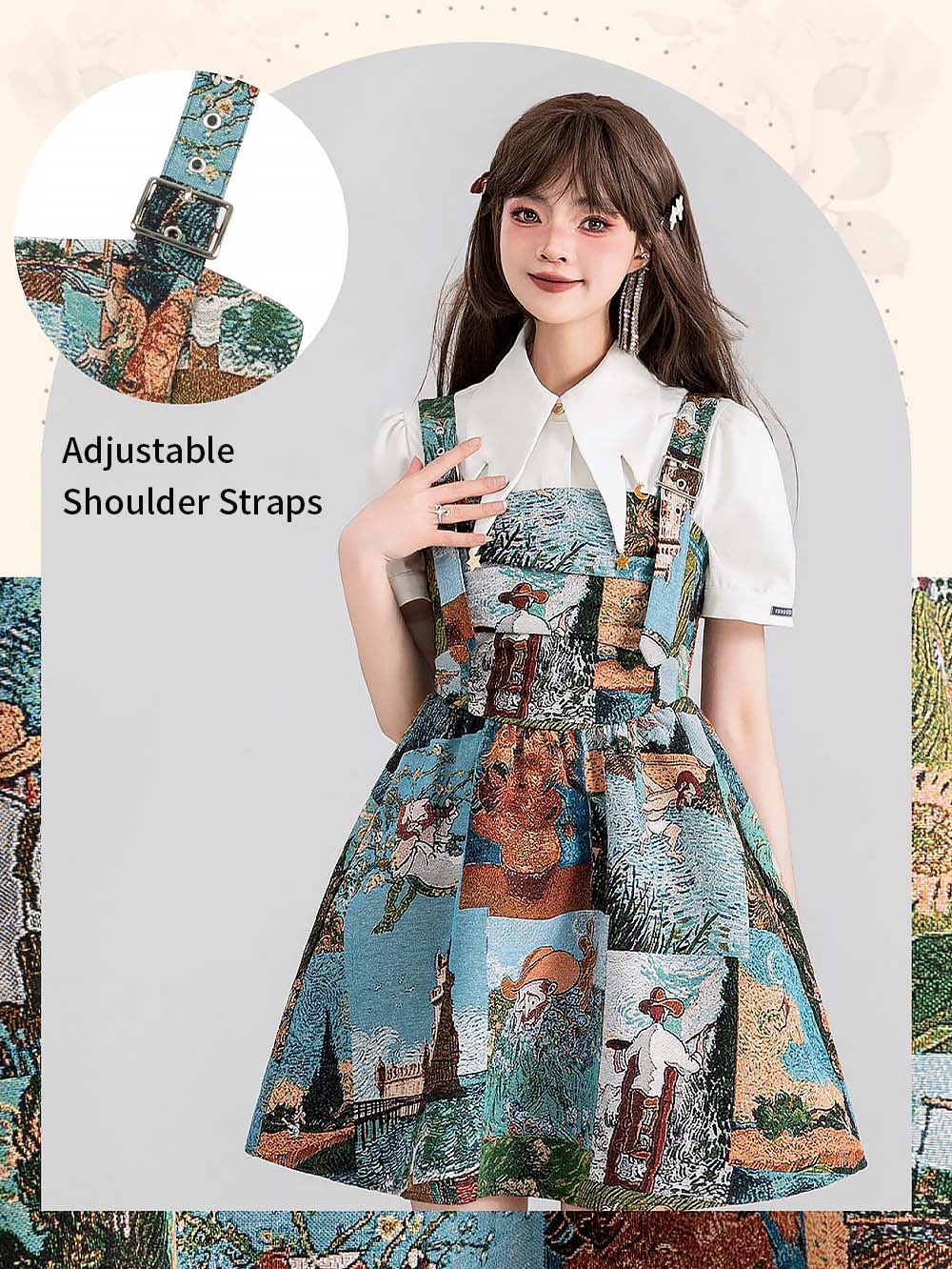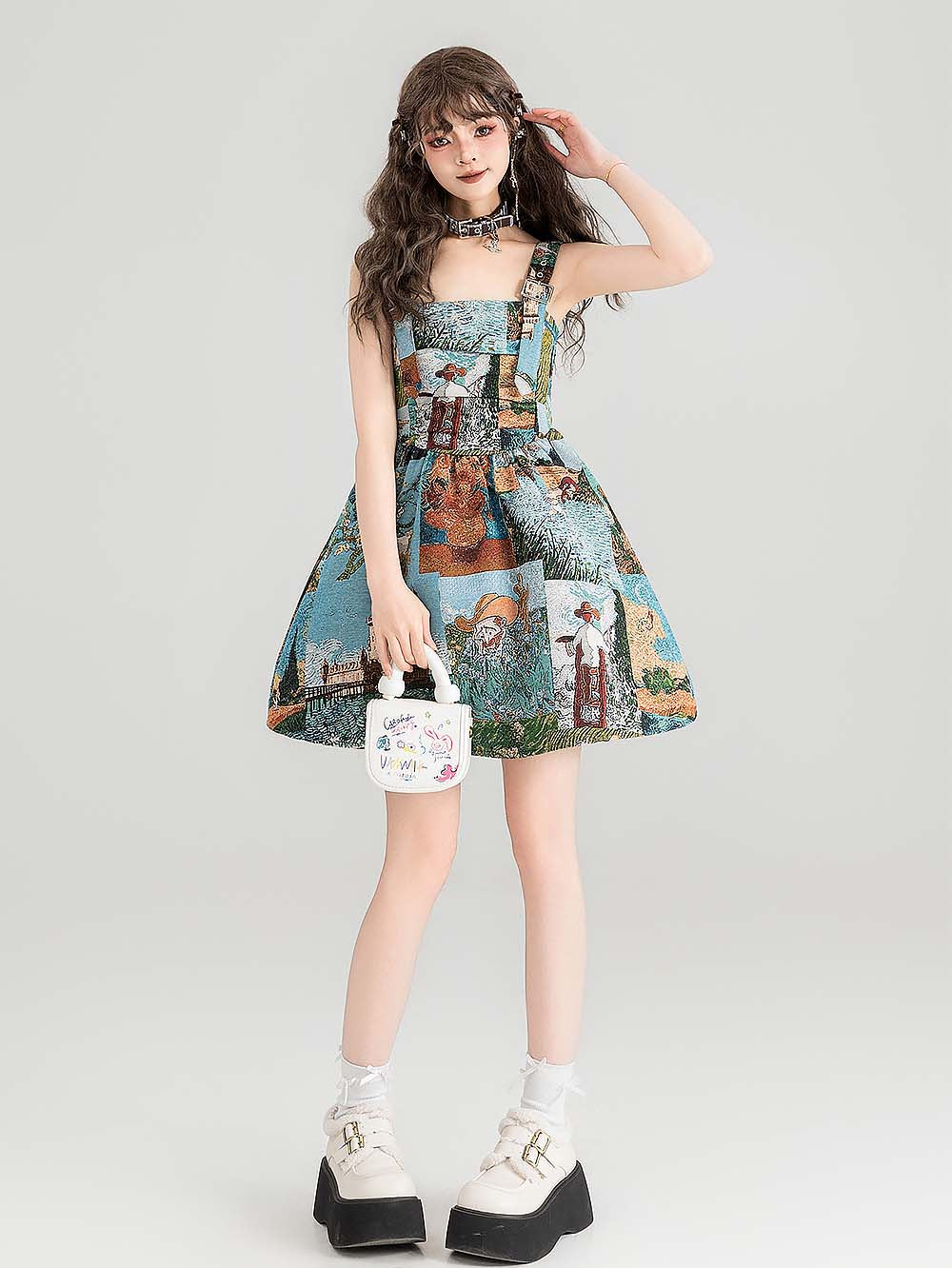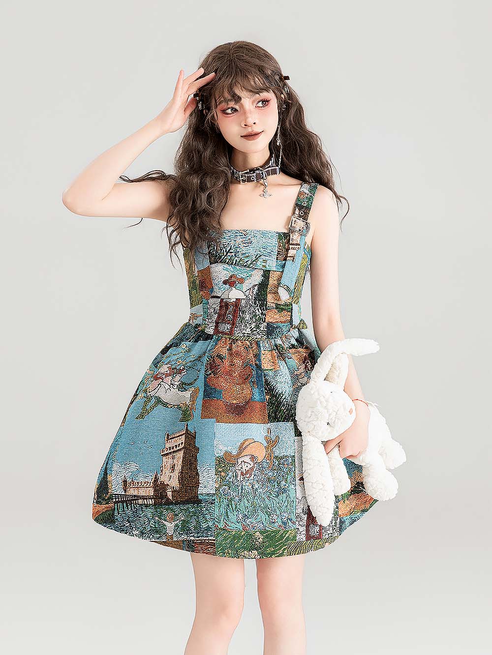 High-End Jacquard Oil Painting Style Pinafore Dress | ZAKAPOP ‐ Artwork Short Dress / M