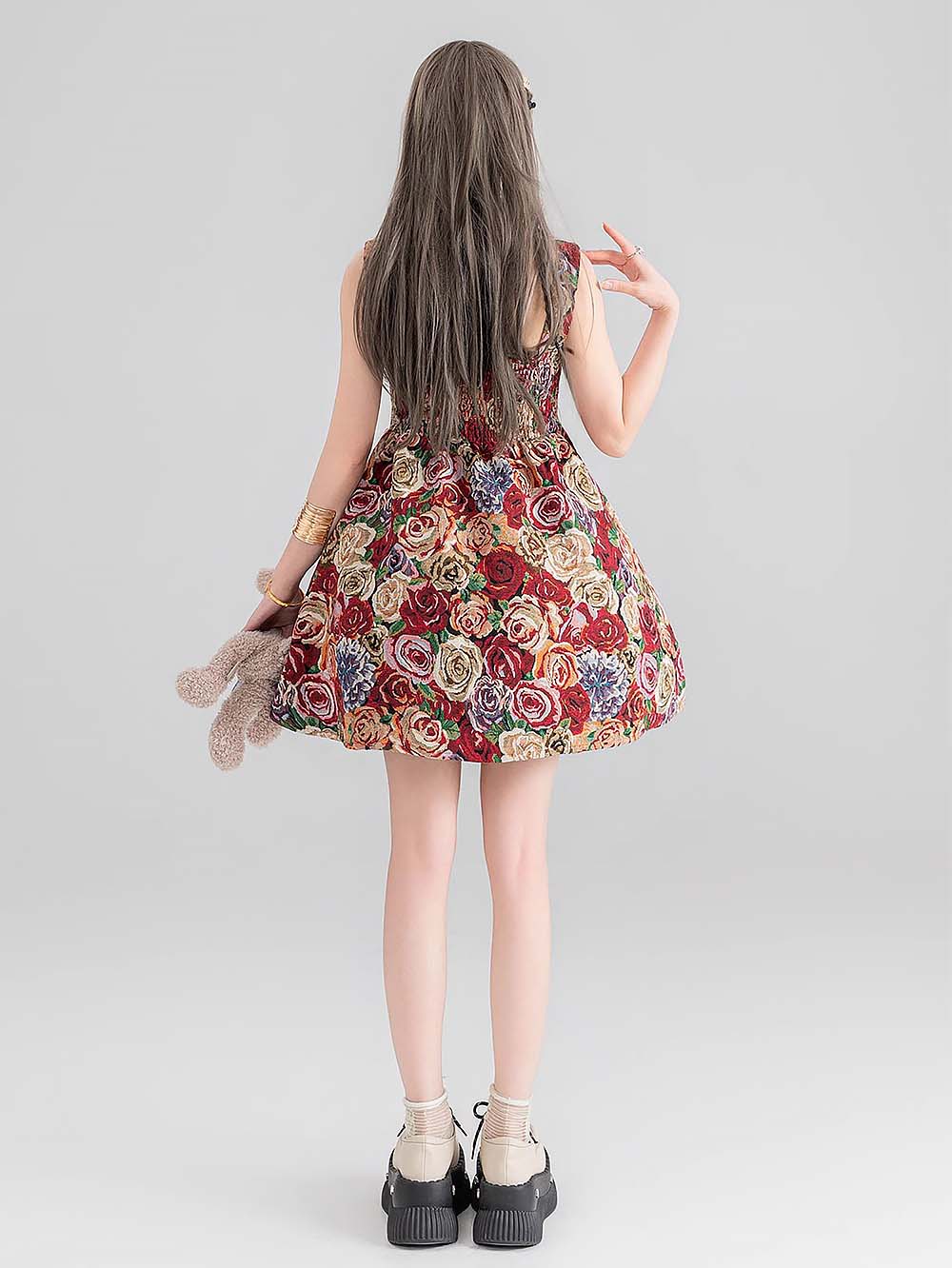 High-End Jacquard Oil Painting Style Pinafore Dress | ZAKAPOP ‐ Flowers Short Dress / 2XL