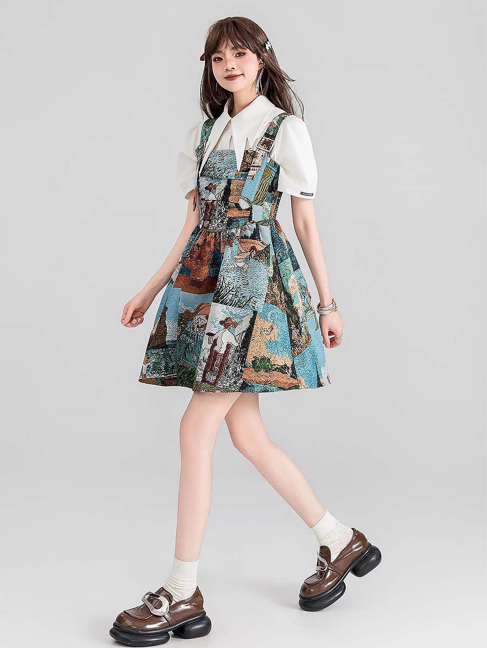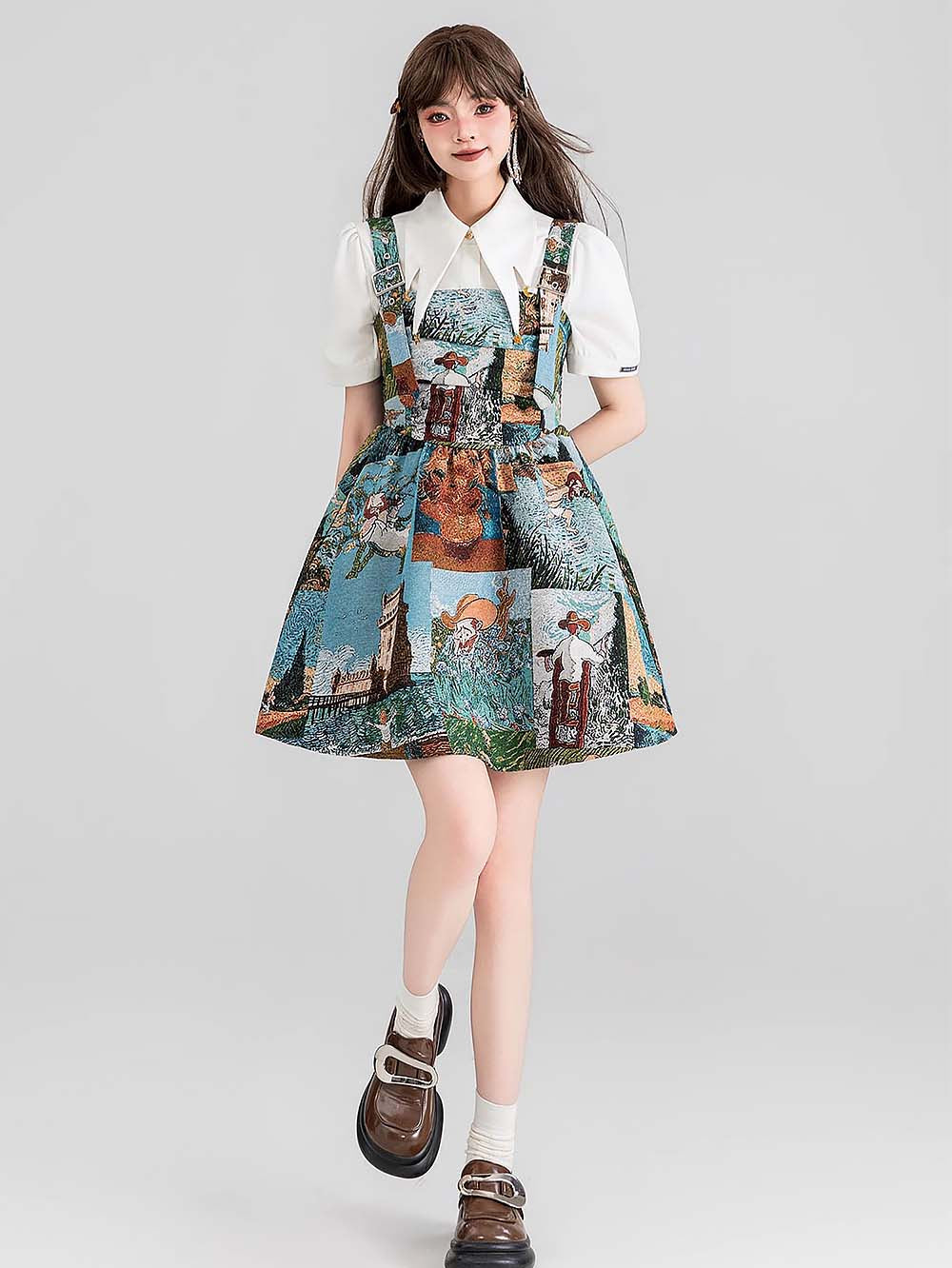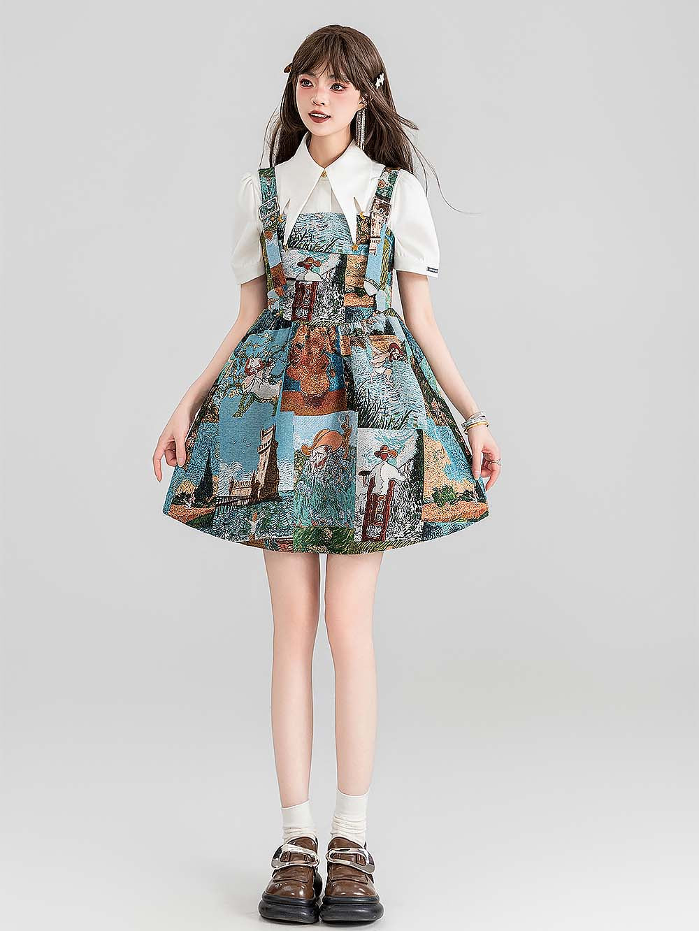 High-End Jacquard Oil Painting Style Pinafore Dress | ZAKAPOP ‐ Short Sleeve Shirt / S