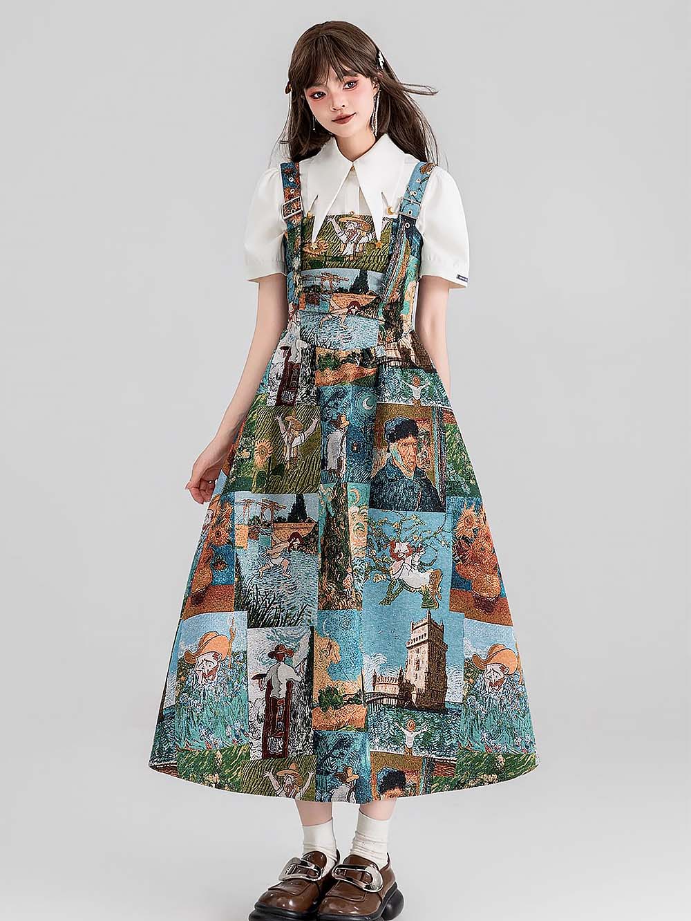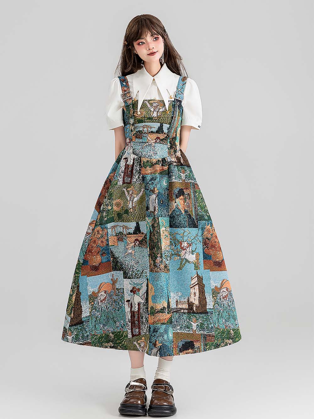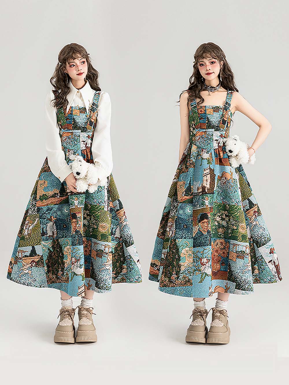 High-End Jacquard Oil Painting Style Pinafore Dress | ZAKAPOP ‐ Artwork Long Dress / M